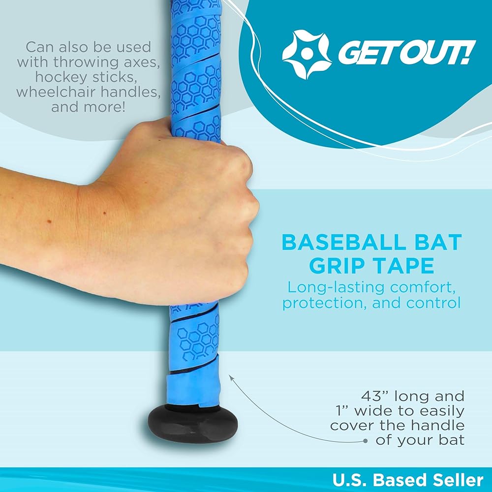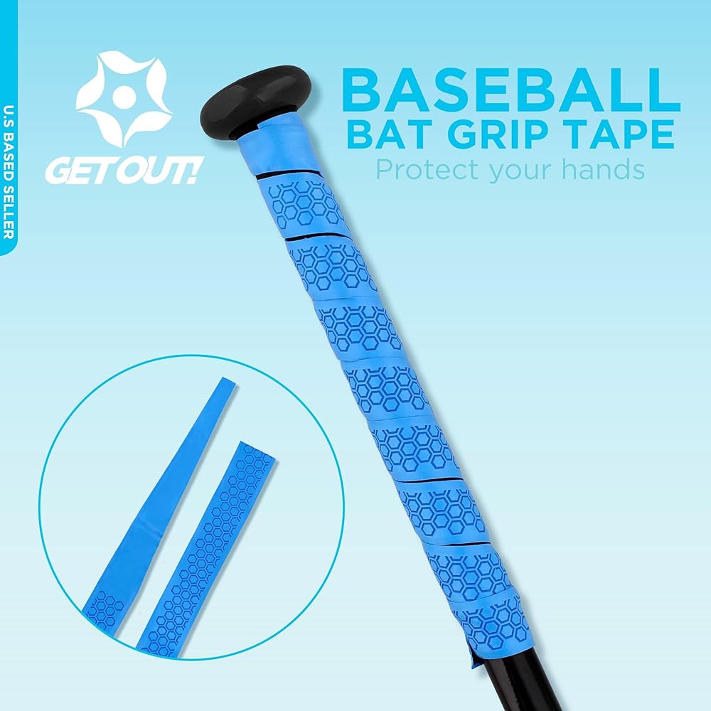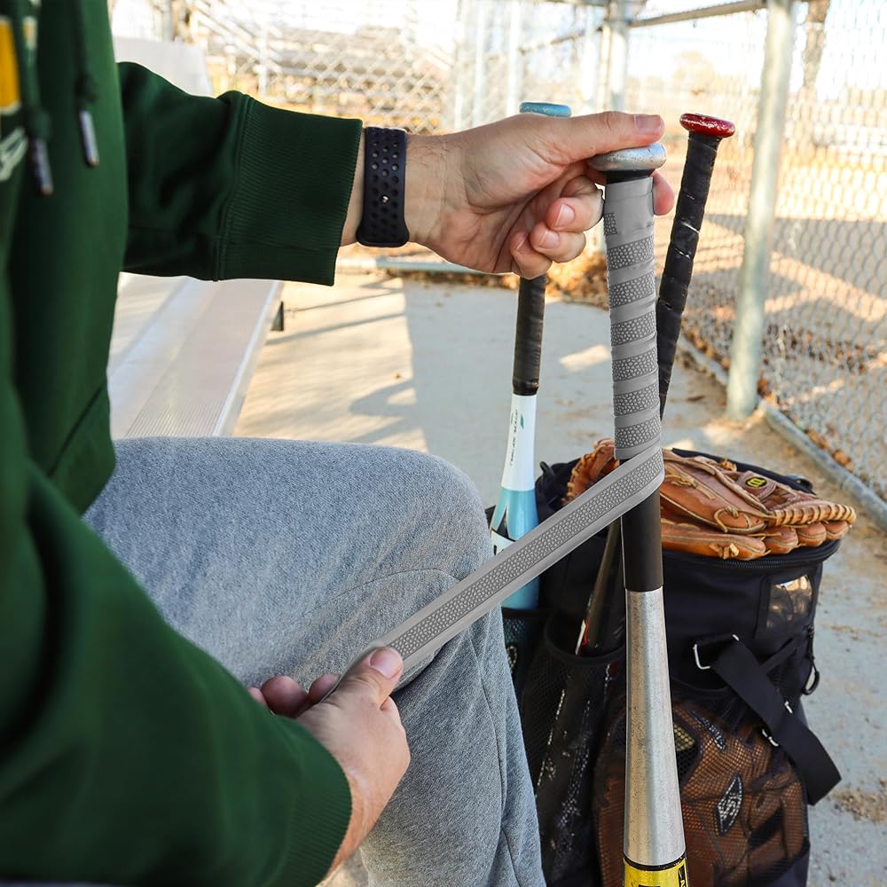[أغطية مضارب البيسبول اللاصقة]: قم بلف مضارب البيسبول والكرة اللينة الخاصة بك مع Get Out! شريط قبضة مضرب البيسبول لتوفير الراحة المثالية والحماية والتحكم الذي يدوم طويلاً؛ شريط قبضة مضرب الكرة اللينة ذو اللون الرمادي المسامي آمن للظروف الرطبة أو الجافة