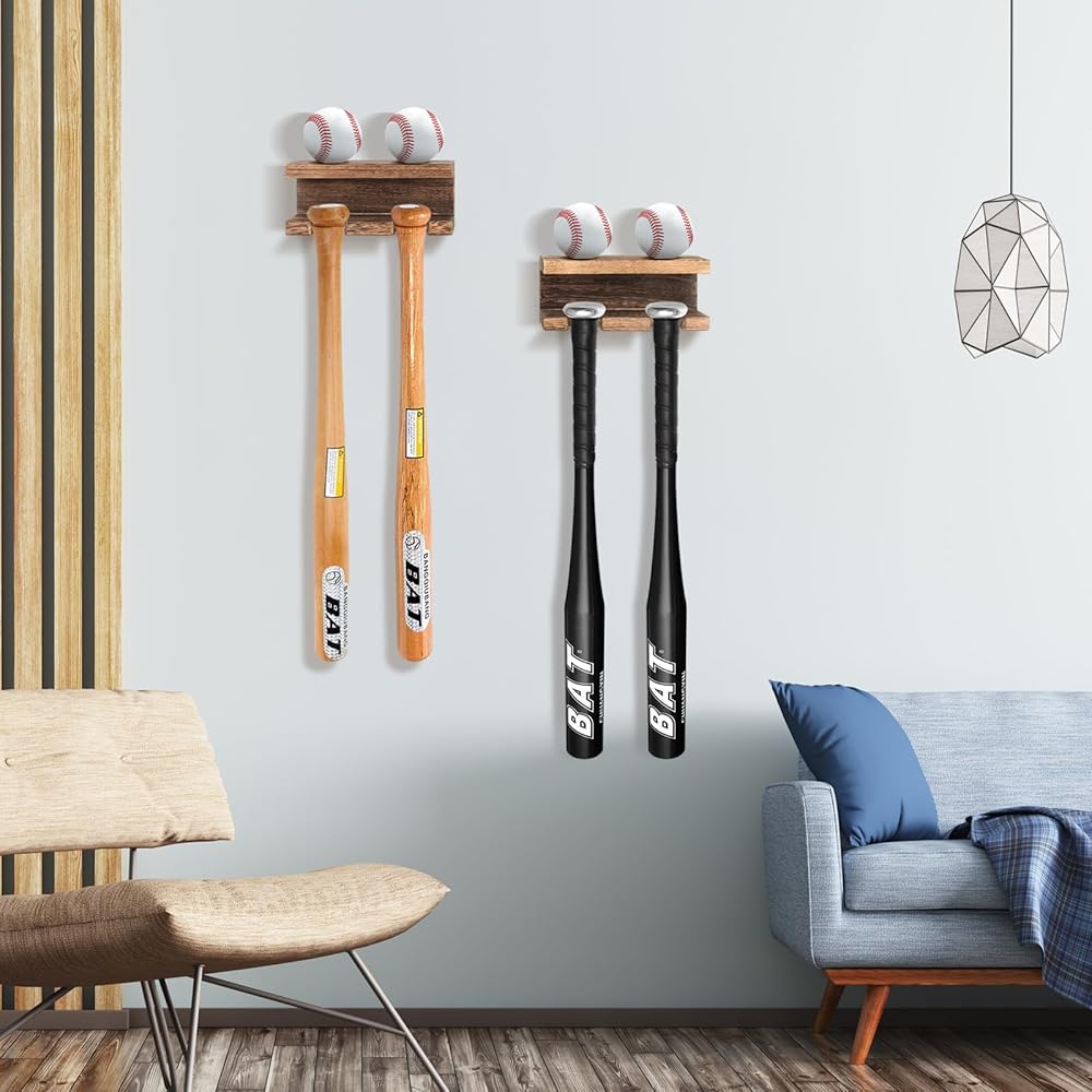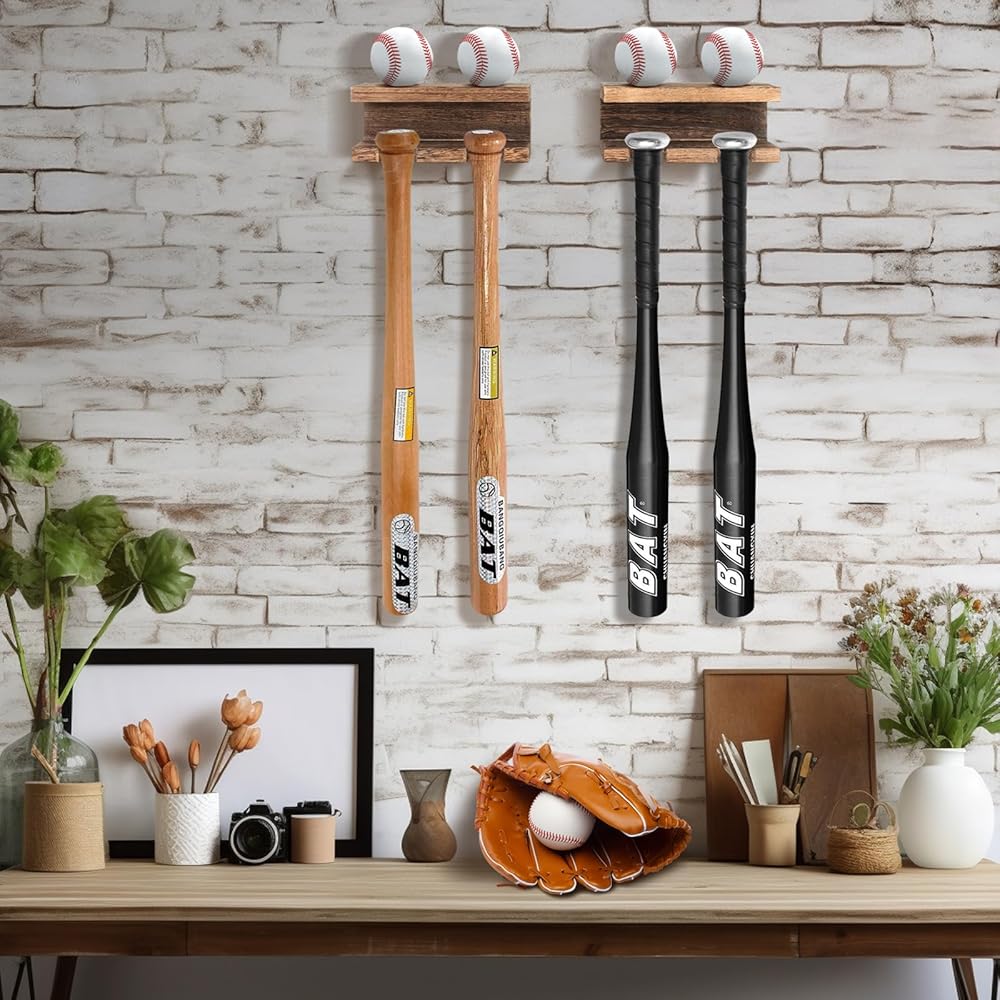 - Wall Mount Baseball Bat Organized and Ball Display Floating Shelf,Keep 4 Bats and 4 Balls.