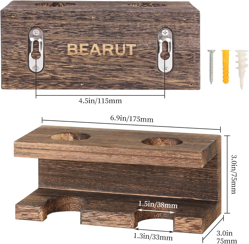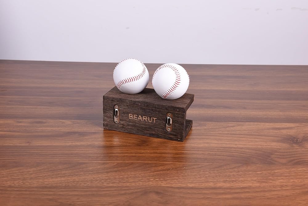 عبوة من قطعتين من حامل مضرب البيسبول ورف عائم لعرض الكرة على الحائط ورف مضرب بيسبول منظم من الخشب