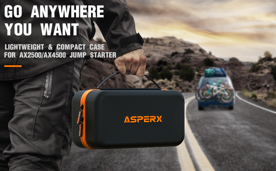 • مصنوعة من مادة EVA عالية الجودة، قم بحماية جهاز القفز الخاص بك بحافظة مقاومة للسحق والصدمات ومقاومة للطقس تحمي بشكل فعال من الصدمات العرضية والخدوش والانبعاجات. تناسب حقيبة Jump Starter هذه جهاز ASPERX's AX2500 AX3500 AX4500 12V Jump Starter.