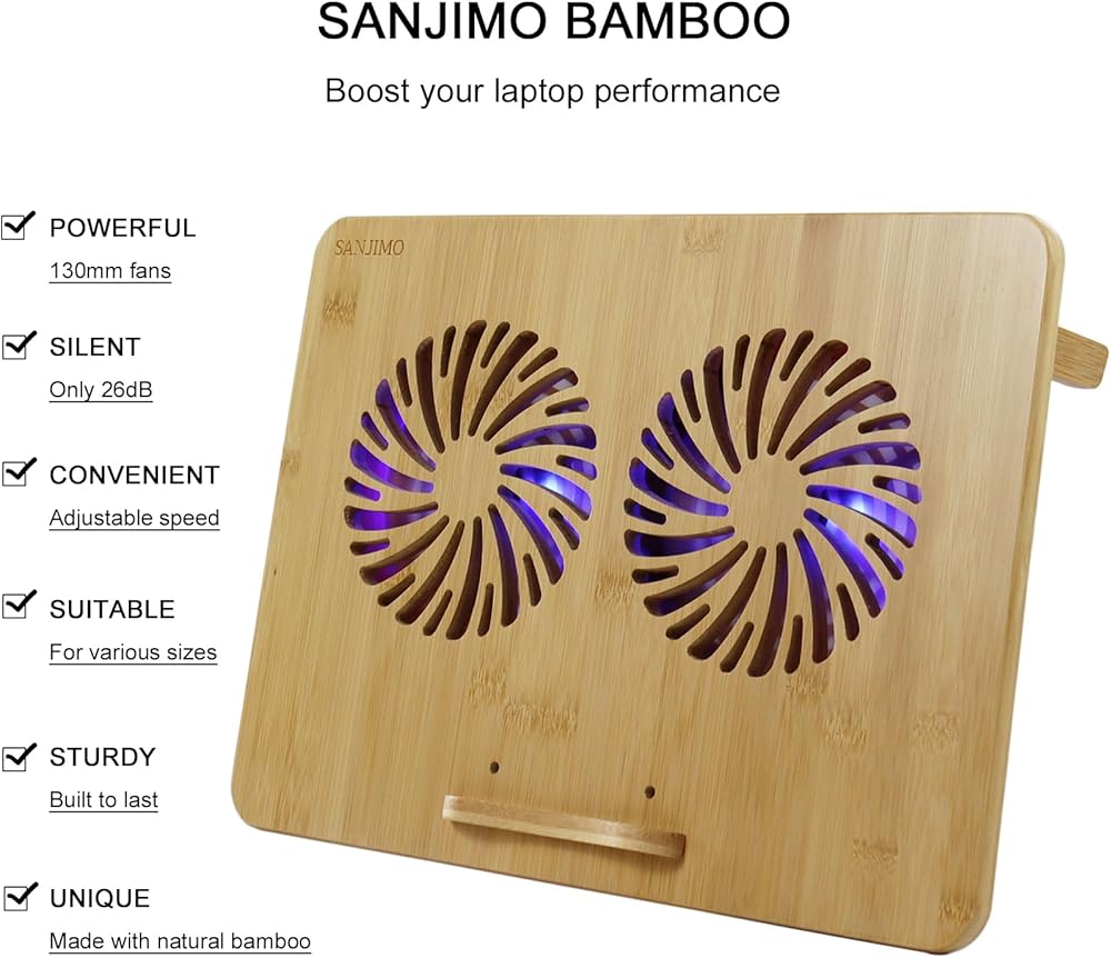 🌱[هيكل من الخيزران]: مصنوعة من الخيزران بنسبة 100%، توفر وسادة تبريد الكمبيوتر المحمول هذه نفس الأداء لمنصات ألعاب الكمبيوتر مع تصميم أنيق. يوفر تصميمه القوي قاعدة ثابتة قادرة على دعم وحماية الكمبيوتر المحمول الخاص بك. يبلغ حجمه 15 × 11 بوصة، ويناسب أجهزة الكمبيوتر المحمولة التي تتراوح أحجامها من 13 إلى 16 بوصة.