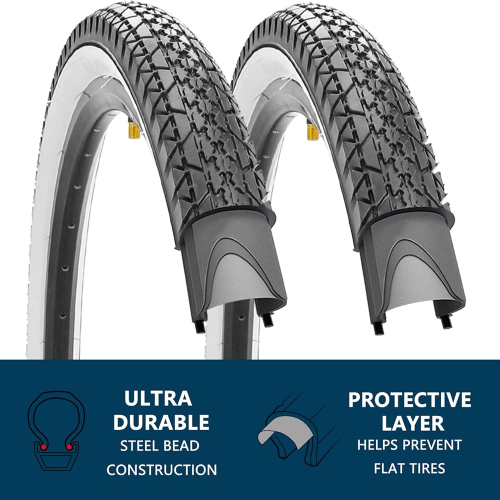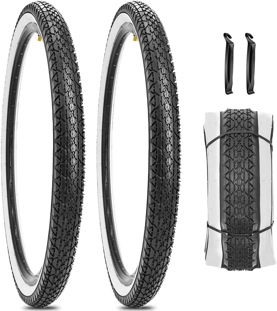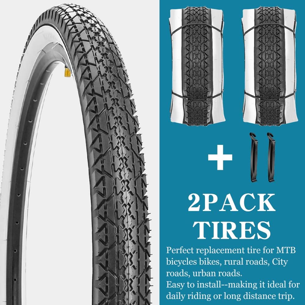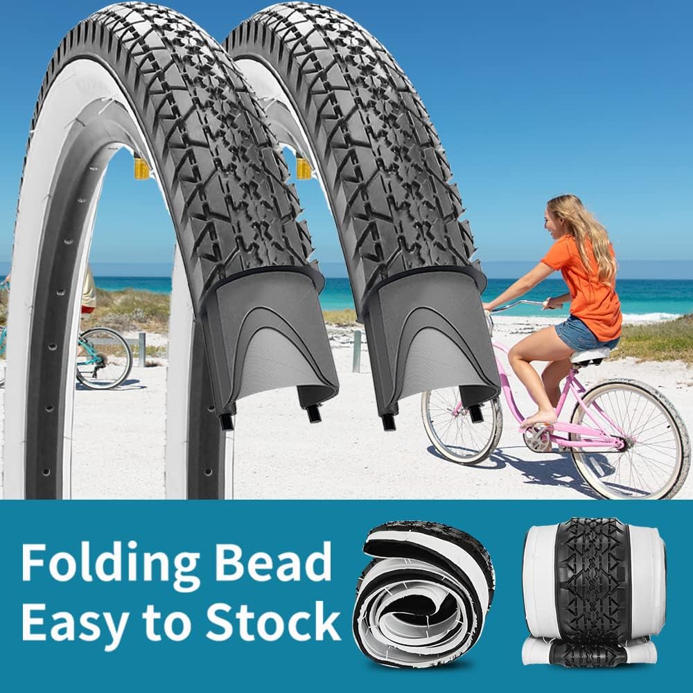 - [المقاس]: عبوتان من إطارات الدراجة مقاس 26 × 2.125 بوصة. تتضمن العبوة قطعتين من إطارات دراجات الشاطئ وأنبوبين داخليين مع رافعات الإطارات.