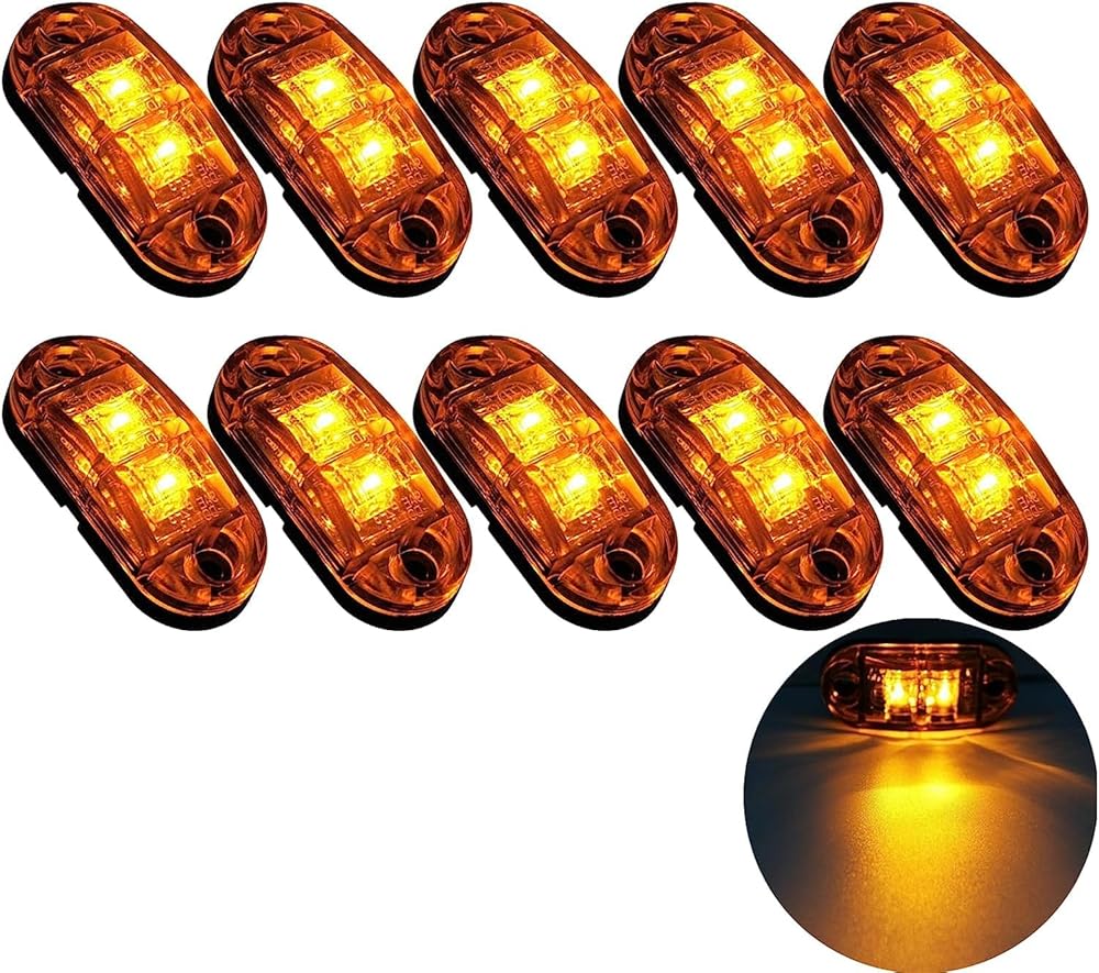 Vechkom 10X 2 LED أضواء العلامات الجانبية 12/ 24 فولت مقطورة الجانب مصباح تحذير الضوء الأصفر لشاحنة RV قافلة
