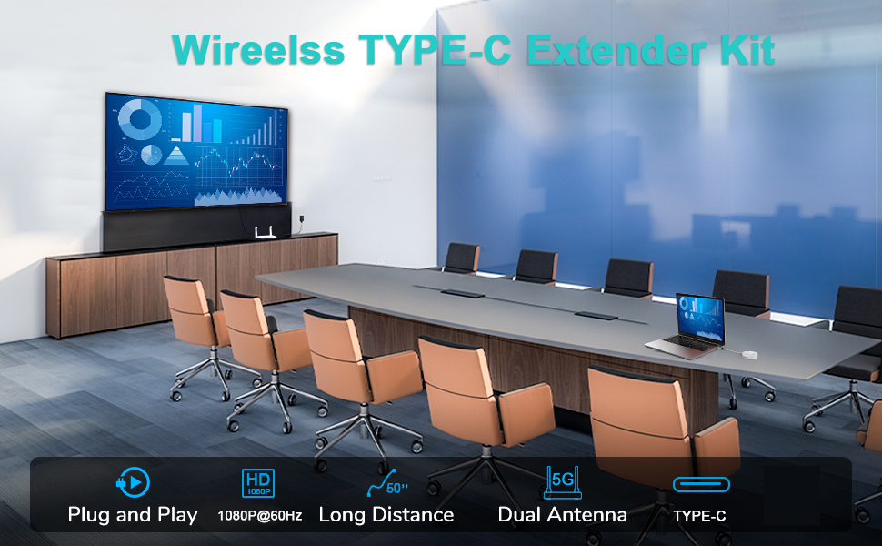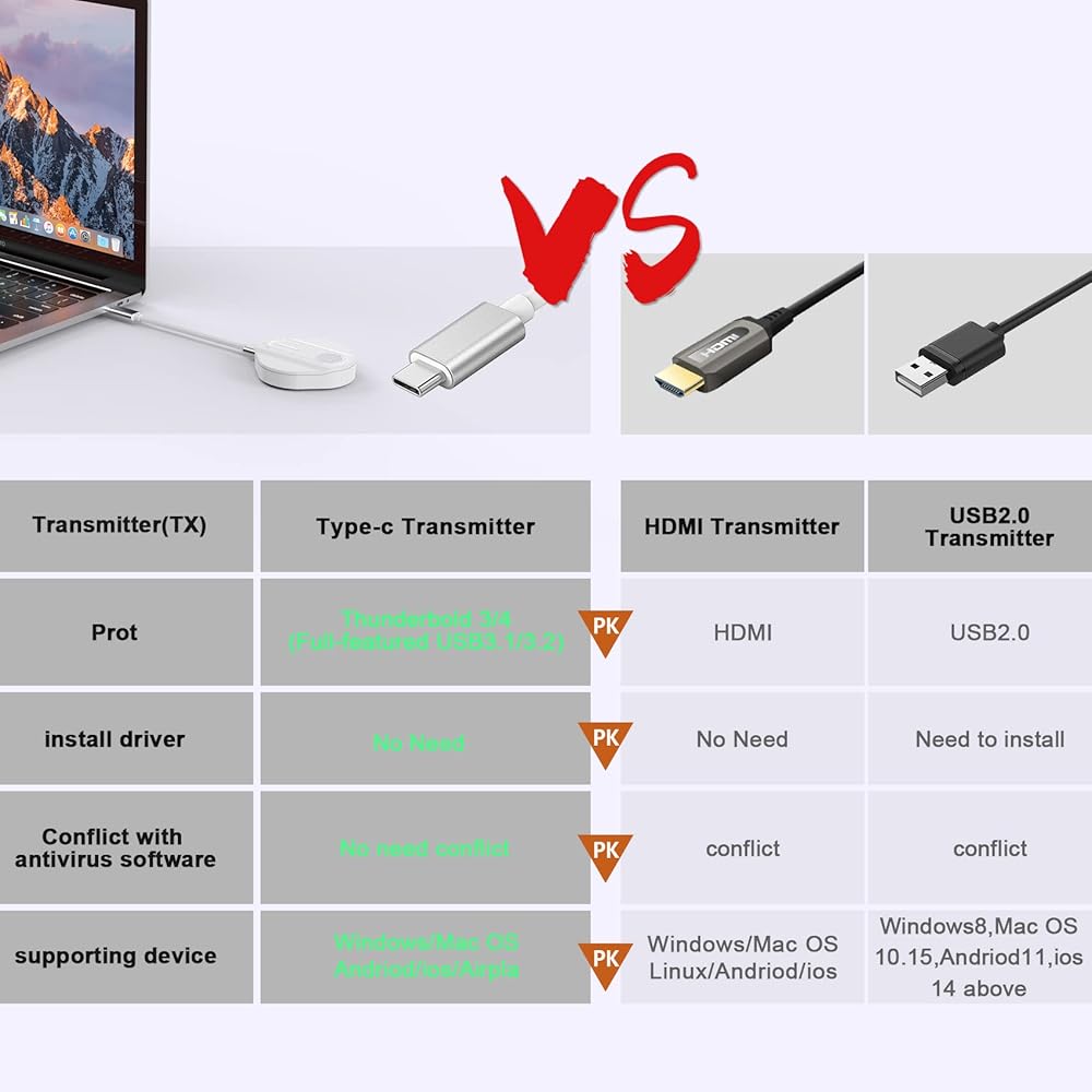 جهاز إرسال واستقبال لاسلكي USB-C، نظام العرض اللاسلكي Thunderbolt Type-c ينقل الصوت/الفيديو من الهاتف الذكي المحمول إلى جهاز عرض HDTV