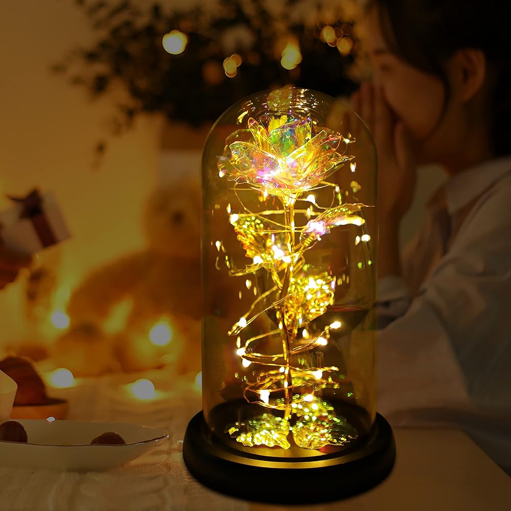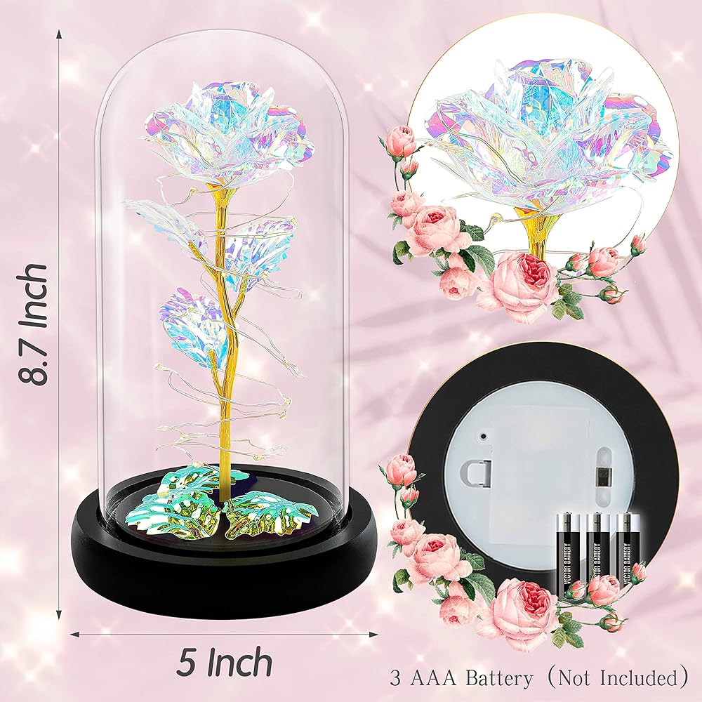 🎁 أظهر لها أنها تحبها وتعتني بها: هذه الزهور الاصطناعية من الورود هي هدية مثالية للأشخاص المحبوبين والأصدقاء والعائلة وما إلى ذلك. هذه الوردة ذات القبة الزجاجية هي هدية جميلة ورائعة ستذكرها بحبك كل يوم. هدية زهرة الورد تناسب جميع أنواع النساء في أي عمر. هدايا الورد للأم.