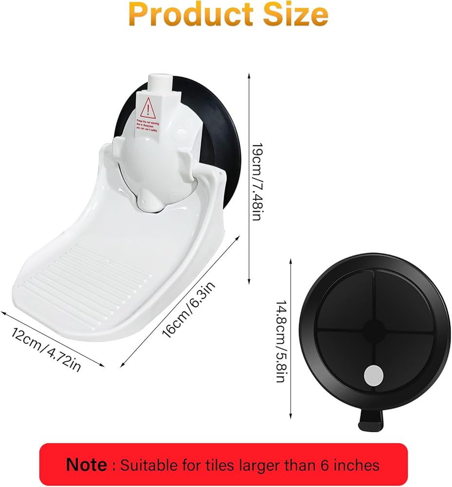 • 👏[كوب شفط قوي]: يأتي الجزء السفلي من مسند قدم الحمام بقاعدة كوب شفط قوية. ما عليك سوى ربط كوب الشفط بجدار جاف والضغط على مشبك القاعدة لتثبيته.