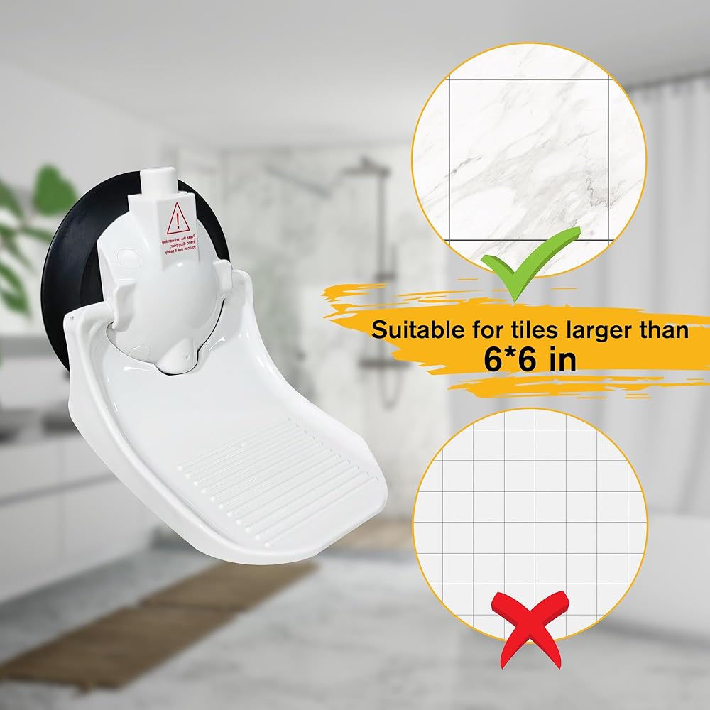 مسند قدم الدش لأرجل الحلاقة، مسند قدم باديكير مع كوب شفط قوي، سعة تحميل 330 رطل، مقعد قدم دش غير قابل للانزلاق للحلاقة، حامل قدم دش قابل لإعادة الاستخدام بدون حفر