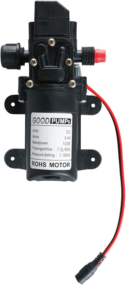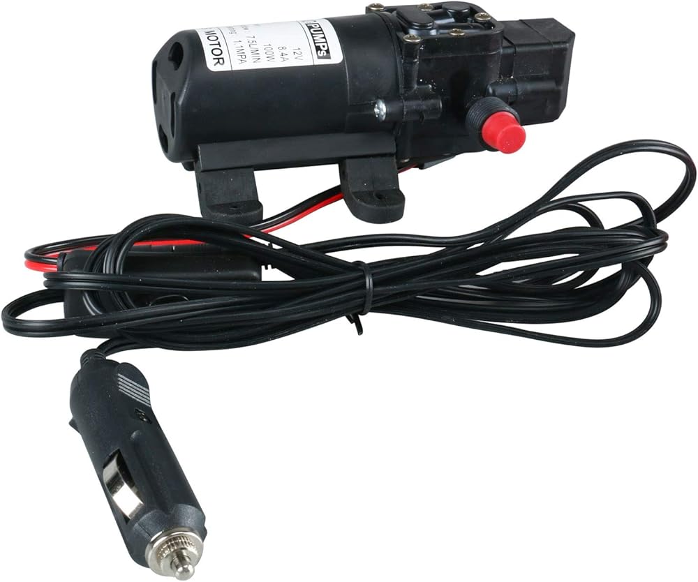 الجهد: تيار مستمر 12 فولت، الأمبير: 8.4 أمبير، الطاقة المقدرة: 100 وات، أكبر تدفق: 7.5 لتر/دقيقة، إعداد الضغط: 160 رطل لكل بوصة مربعة