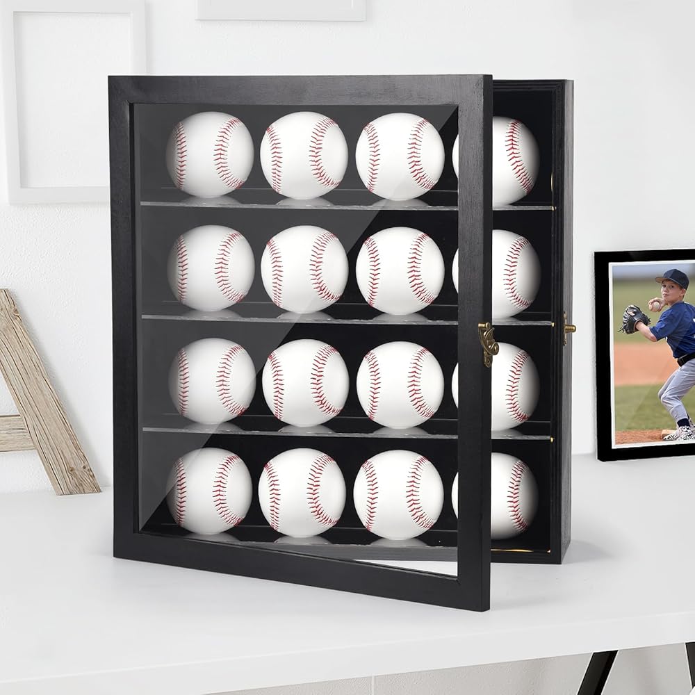 ذكريات جديرة بالاهتمام في حقيبة خفيفة: صندوق ظلال البيسبول مع حماية من الأشعة فوق البنفسجية وأكريليك فائق الوضوح، يحمي مجموعاتك من الغبار. تحتوي على 4 طبقات، كل قسم به 4 فتحات بيسبول لمنع البيسبول من الانزلاق، ويمكنه حمل 16 كرة بيسبول. حافظة عرض البيسبول تمنع الكرات الموقعة من البهتان.