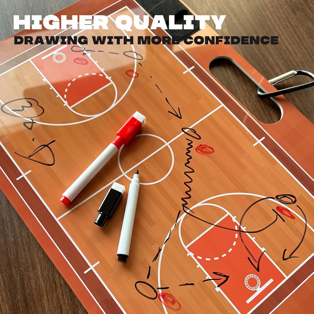 Using our Dry Erase Basketball Coaches, take your coach to a new level and help players understand their responsibilities and positions to maximize team performance. Adopting PVC material with better flexibility, it is resistant to falling and not easily deformed. The smooth surface treatment makes writing clearer, easy to write and erase,and has a longer service life. It is equipped with two colors of markers, one whiteboard eraser and one movable hook, making it more convenient to use.