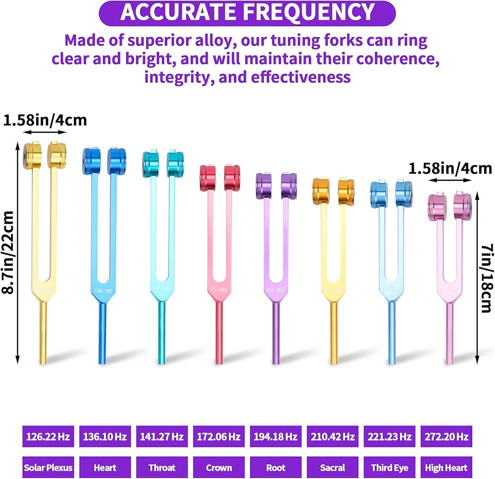 【مادة عالية الجودة】شوكات ضبط الشاكرا الخاصة بنا مصنوعة من سبائك الألومنيوم عالية الجودة، وهي مقاومة للتآكل وقوية ومتينة. تنتج هذه الشوكات الرنانة صوتًا رنينًا طويل الأمد، مما يضمن أداء تردد ممتاز.