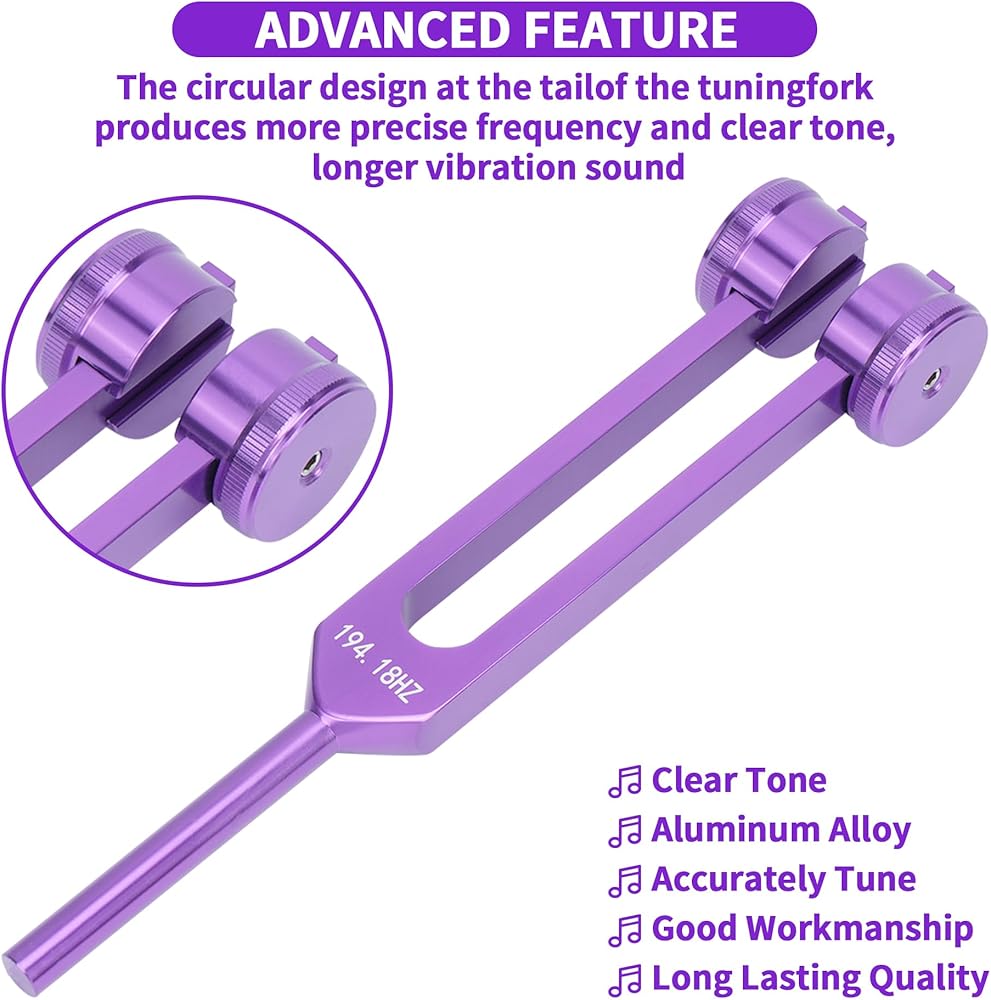 【نغمة واضحة ومشرقة】 تحتوي شوكات الضبط الموزونة على أوزان موازنة في نهاية كل شوكة، مما يجعل ترددها أكثر دقة، ونغمها أكثر وضوحًا، وصوتها الاهتزازي أطول.