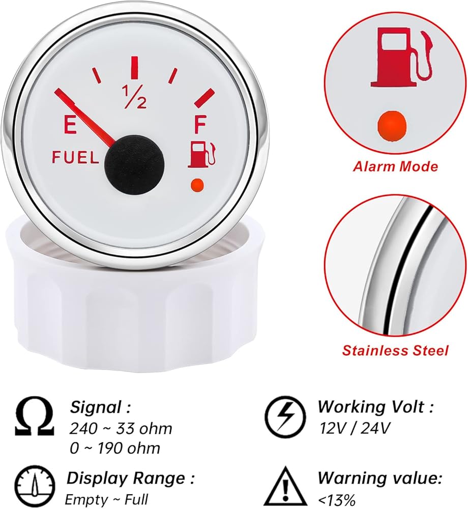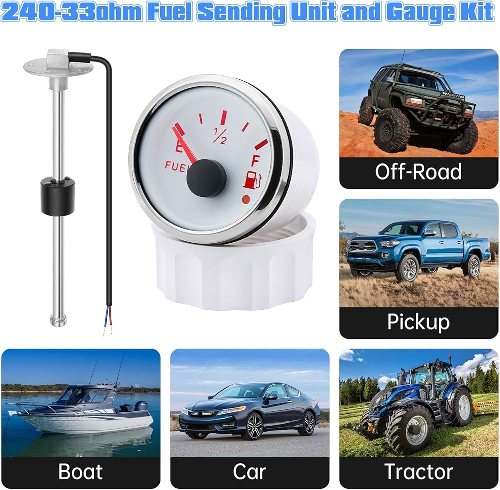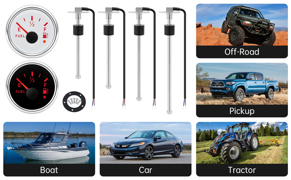 🚗【تطبيق واسع 】تتوافق وحدة إرسال الوقود ومجموعة القياس مع الإخراج الأمريكي القياسي، 240 أوم - 33 أوم (فارغ - كامل)، 18-21 مم لكل خطوة. وهي متاحة للاستخدام في القوارب أو البحرية أو السيارات أو الدراجات النارية أو المركبات الترفيهية أو اليخوت. إنها مناسبة للوقود والكيروسين والماء وخزانات المواد الكيميائية وأي نوع من السوائل بدون شوائب.