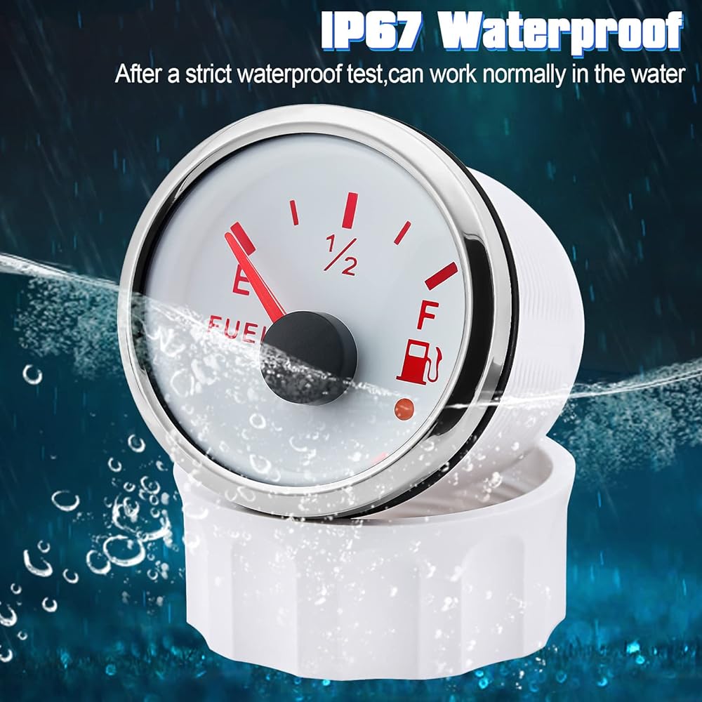 🚗【مقياس الوقود】مقياس الوقود 240-33 أوم يحتوي على مادة من الفولاذ المقاوم للصدأ والبلاستيك، درجة IP67 مقاومة للماء والغبار. قطر التثبيت: Φ52mm أو 2-1/16 بوصة، نطاق الإشارة: E~F، جهد التشغيل: 9-32 فولت يناسب مركبة أو محرك 12 فولت-24 فولت.