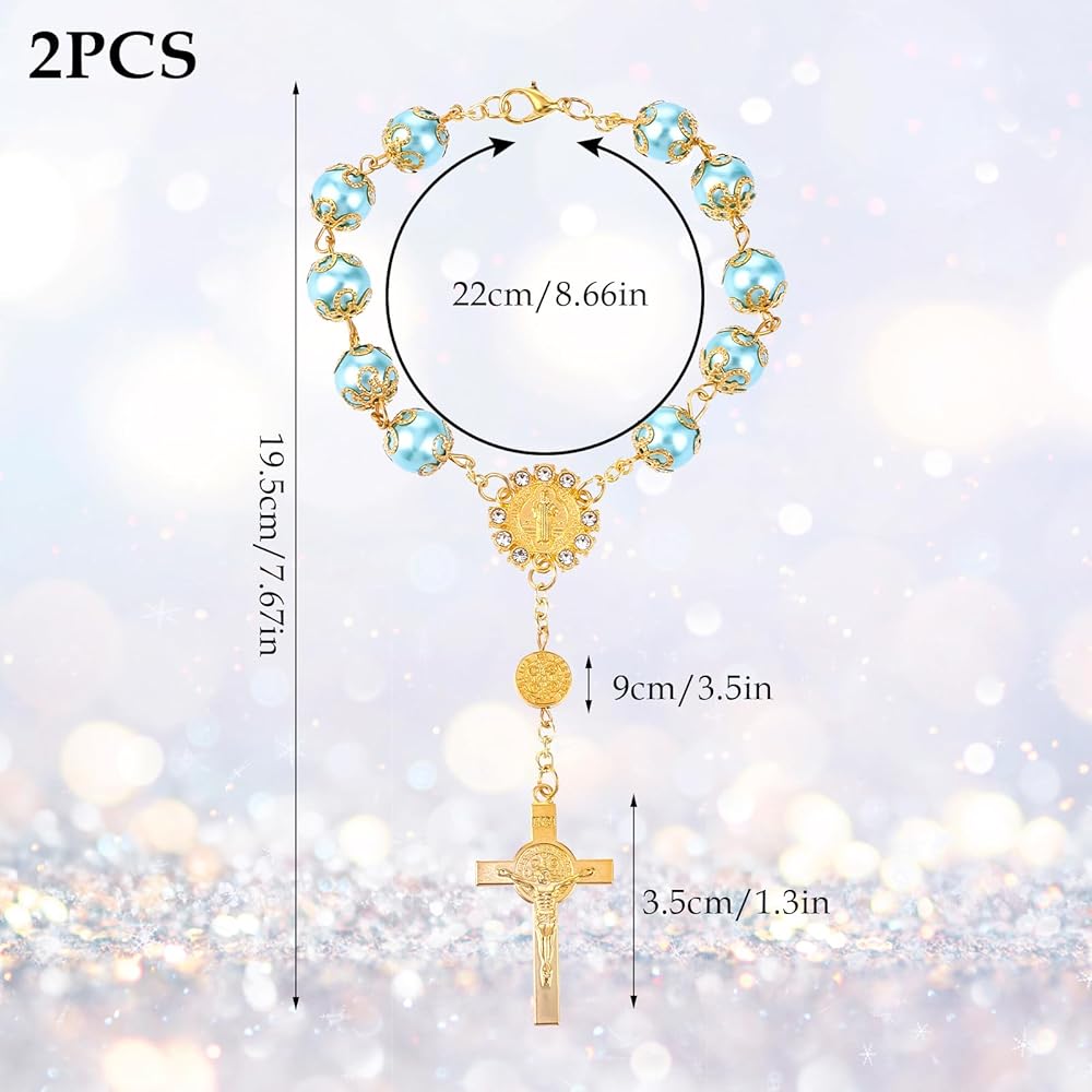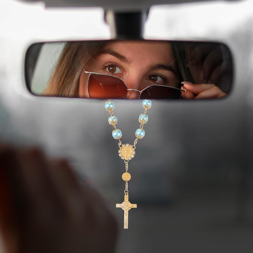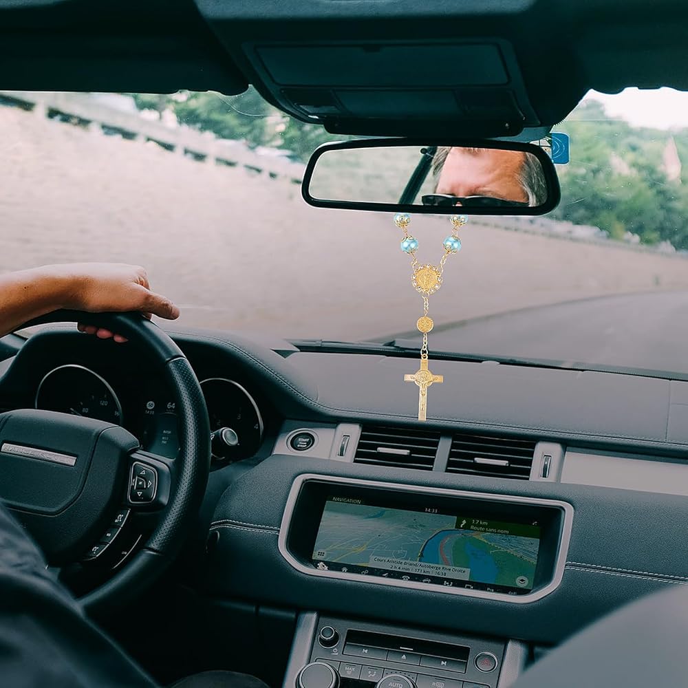 Cobee Car Rosary for Rearview Mirror, 2 Pieces Car Mirror Hanging Cross Auto Rosary Rear View Mirror Pendant Car Hanging Accessories Interior Decors for Women Men