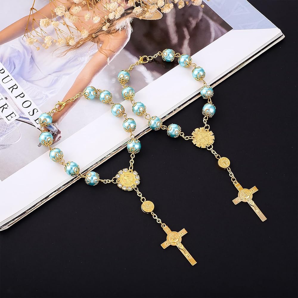 • 【High Quality】Car decorative cross chains are made of faux pearl, alloy cross, and alloy chain, not easy to fade or break, reliable to use; And these rosaries can retain their bright color for a long time, providing you with a long term service.