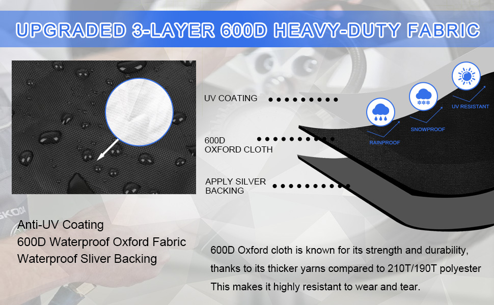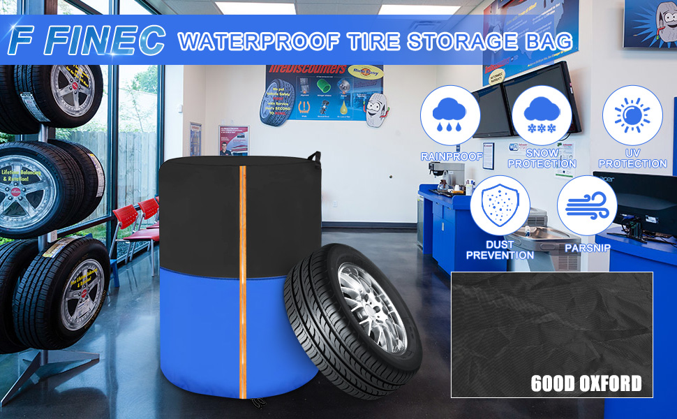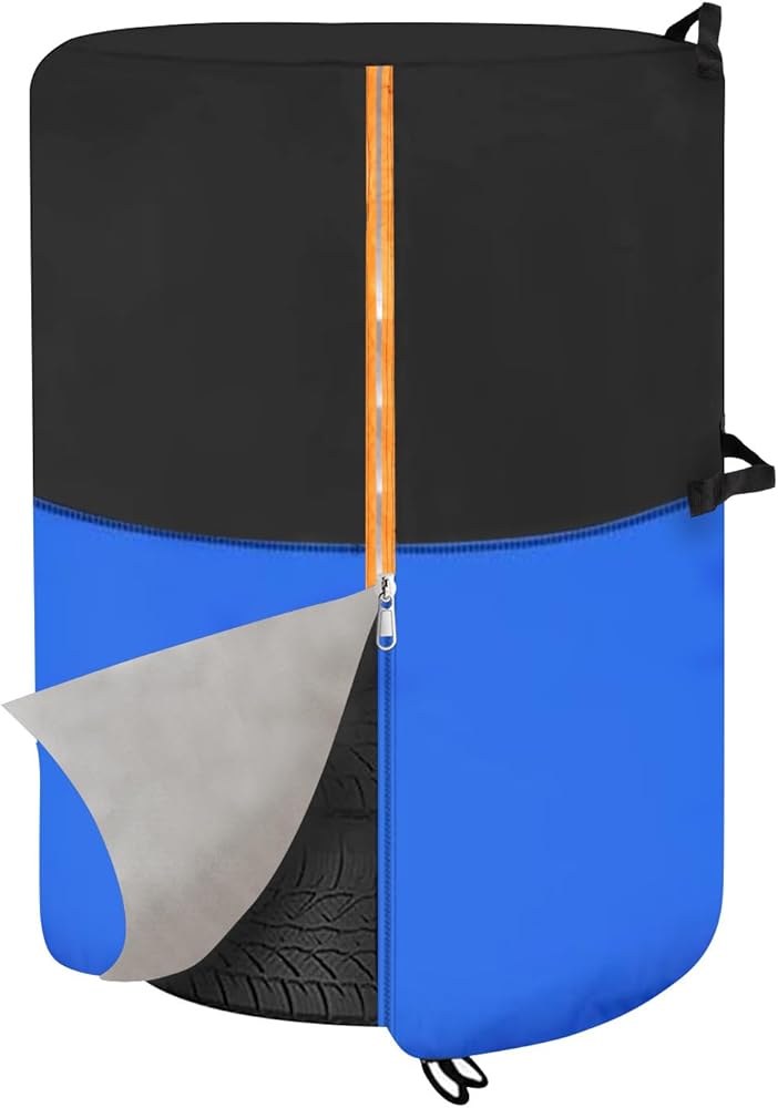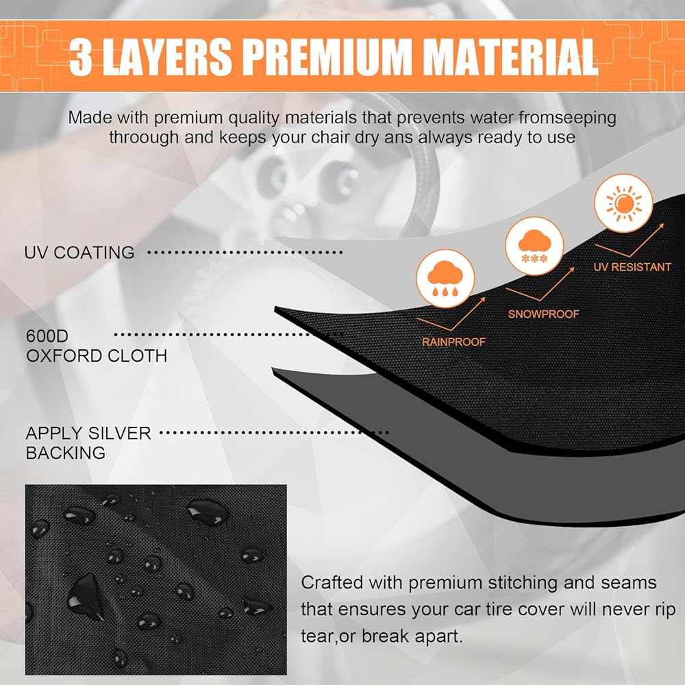 مواد مطورة: حقيبة تخزين الإطارات الخاصة بنا مصنوعة من نسيج أكسفورد 600D عالي الجودة، وهو أكثر سمكًا وأكثر متانة من المواد العادية. الطبقة الخارجية مغطاة بطبقة حماية من الأشعة فوق البنفسجية، بينما تحتوي الطبقة الخلفية على طلاء فضي، مما يوفر مقاومة ممتازة للماء وحماية من الأشعة فوق البنفسجية