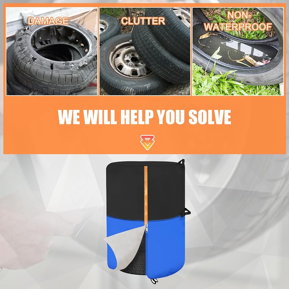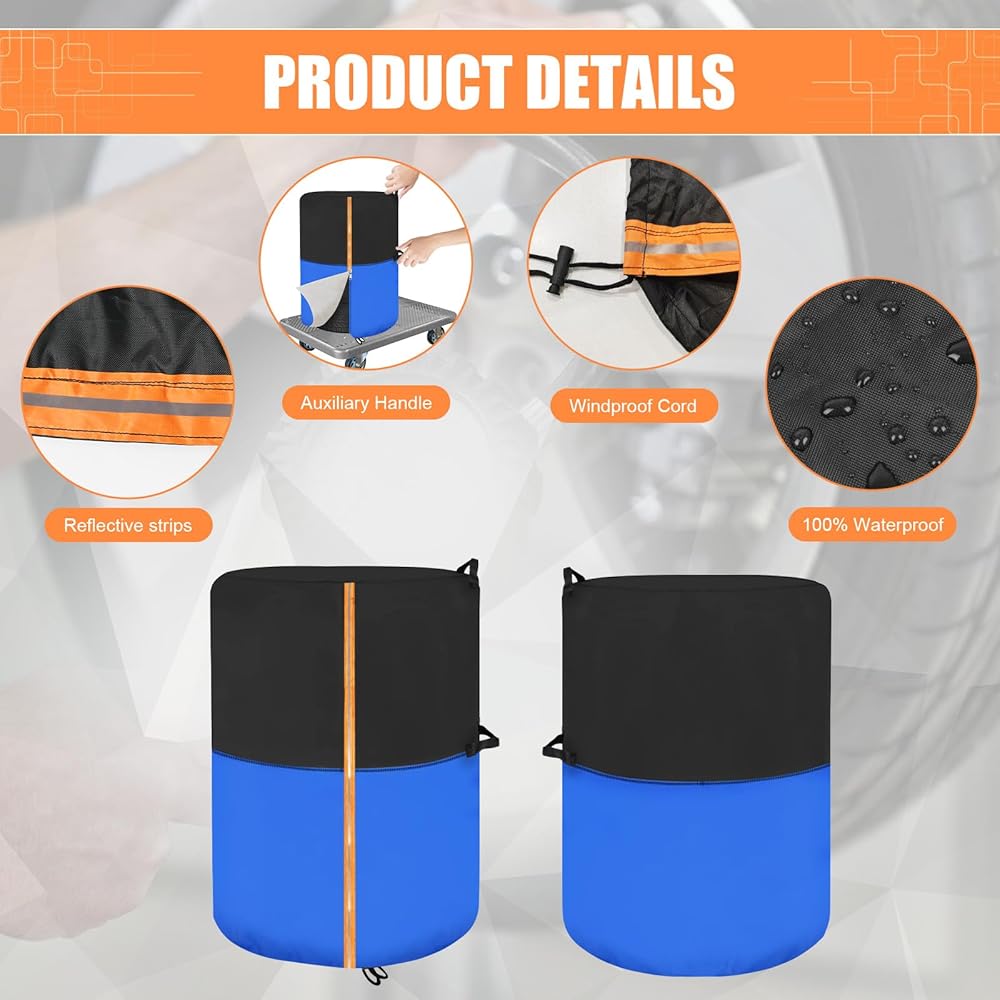 أغطية الإطارات لتخزين أكياس تخزين الإطارات الكبيرة المقاومة للماء للاستخدام في الهواء الطلق، غطاء تخزين الإطارات الاحتياطية الموسمية، أكياس الإطارات المتينة المستخدمة في الشاحنات، وسيارات الدفع الرباعي، والمقطورة للحماية من المطر والثلج، تناسب الإطارات مق