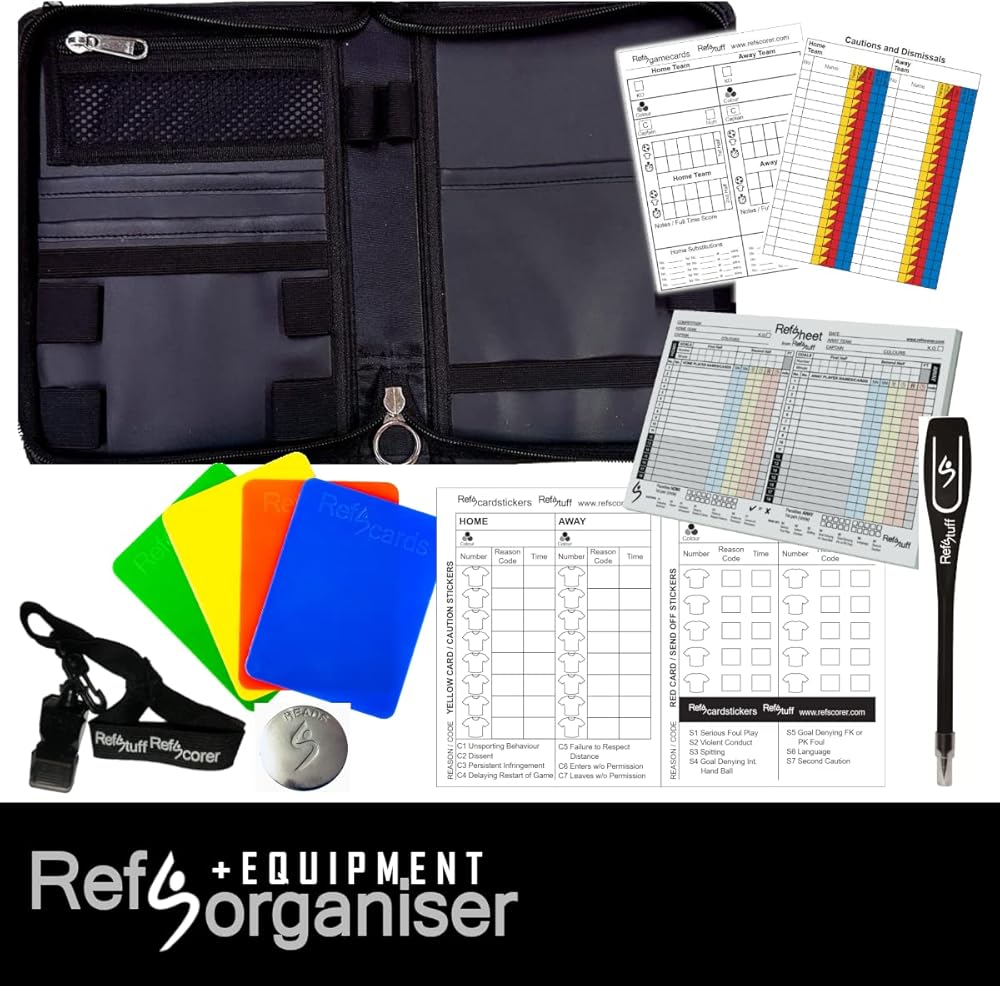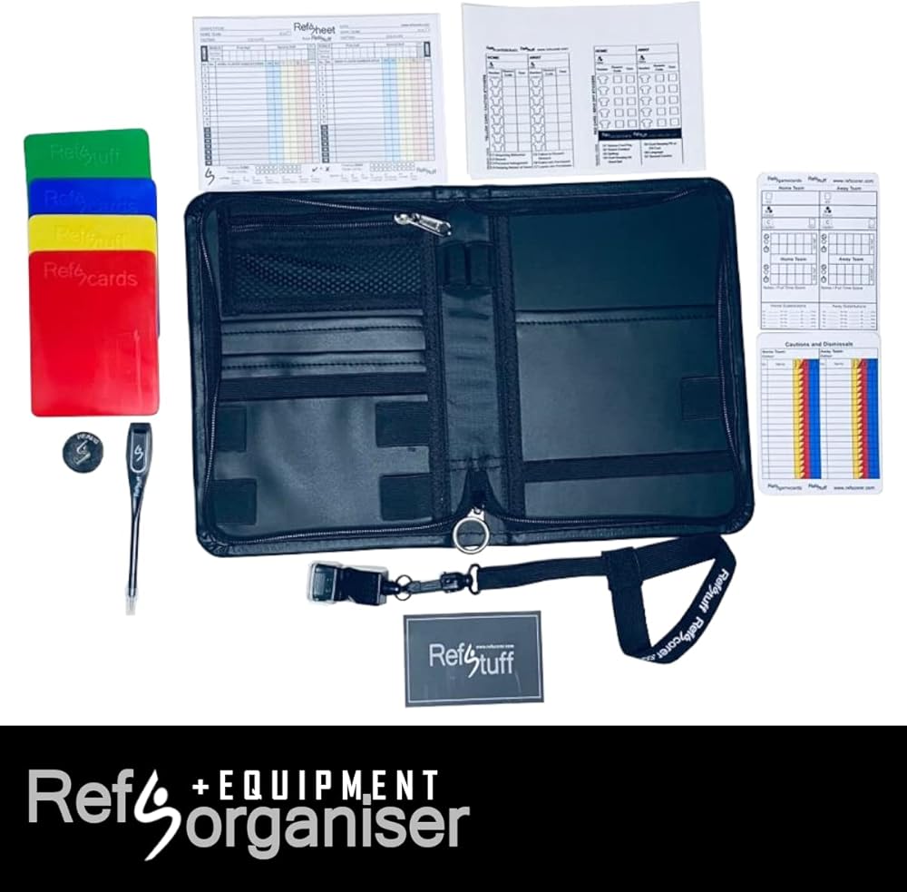 RefSorganiser عبارة عن منظم محفظة لمعدات مباراة الحكام ويستخدم لتخزين جميع العناصر والمعدات الأساسية التي تحتاجها لإدارة المباراة والاحتفاظ بكل شيء معًا في مكان واحد.