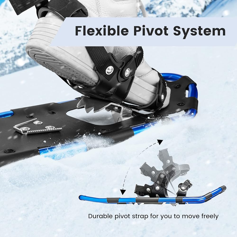 Ergonomic & Comfortable Design: The snowshoes feature streamlined design, slightly upturned rounded tail and flexible pivot system, which ensure maximum flotation and fast movement to provide you with a better hiking, skiing and climbing experience.