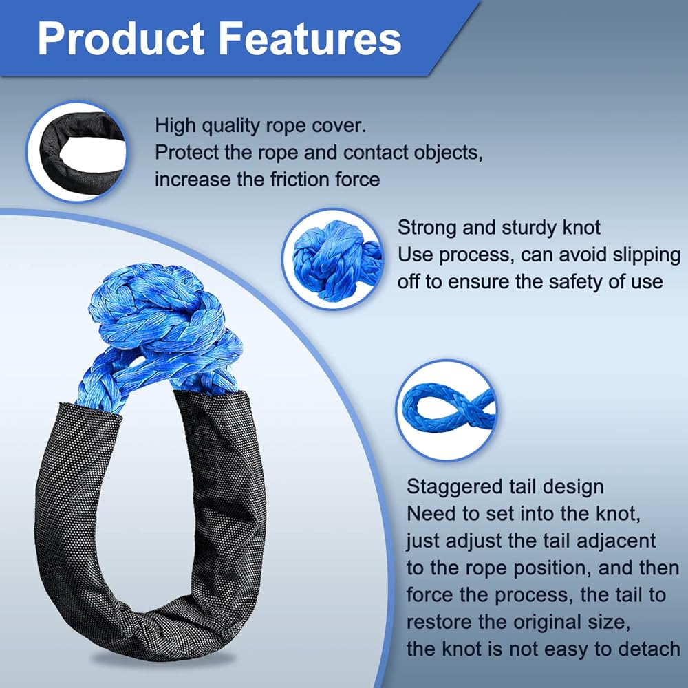 ★【 حلقة تشديد ذاتية: 】 يمكن لتصميم حلقة التشديد الذاتي التعامل بسهولة مع جميع نقاط السحب الصعبة وسحب سيارتك من الخندق والطين والثلج دون خدش الطلاء أو التشطيب المدمر.