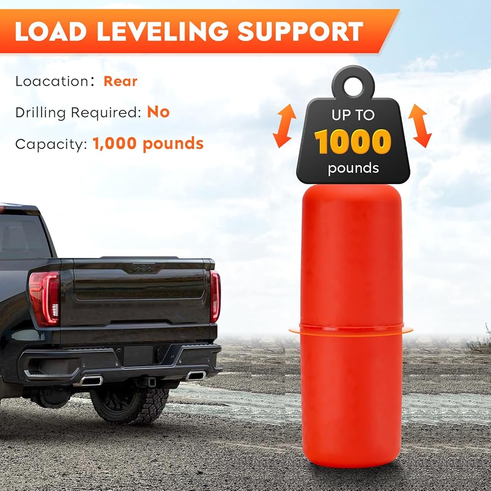 【Improved Capabilities】Up to 1000bls leveling capacity, these kits contain various parts that allow you to carry heavy cargo without sacrificing performance. This helps to keep the vehicle level while towing and hauling and prevents bottoming out, excessive pressure on your tires and rear sagging.
