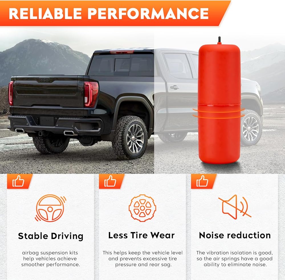 【What You Get】2 Air springs, Mounting Brackets, All hardware needed for installation, Fully-illustrated installation guide. If you have any questions and dissatisfaction with our products, please contact us and we will do our best to help you!
