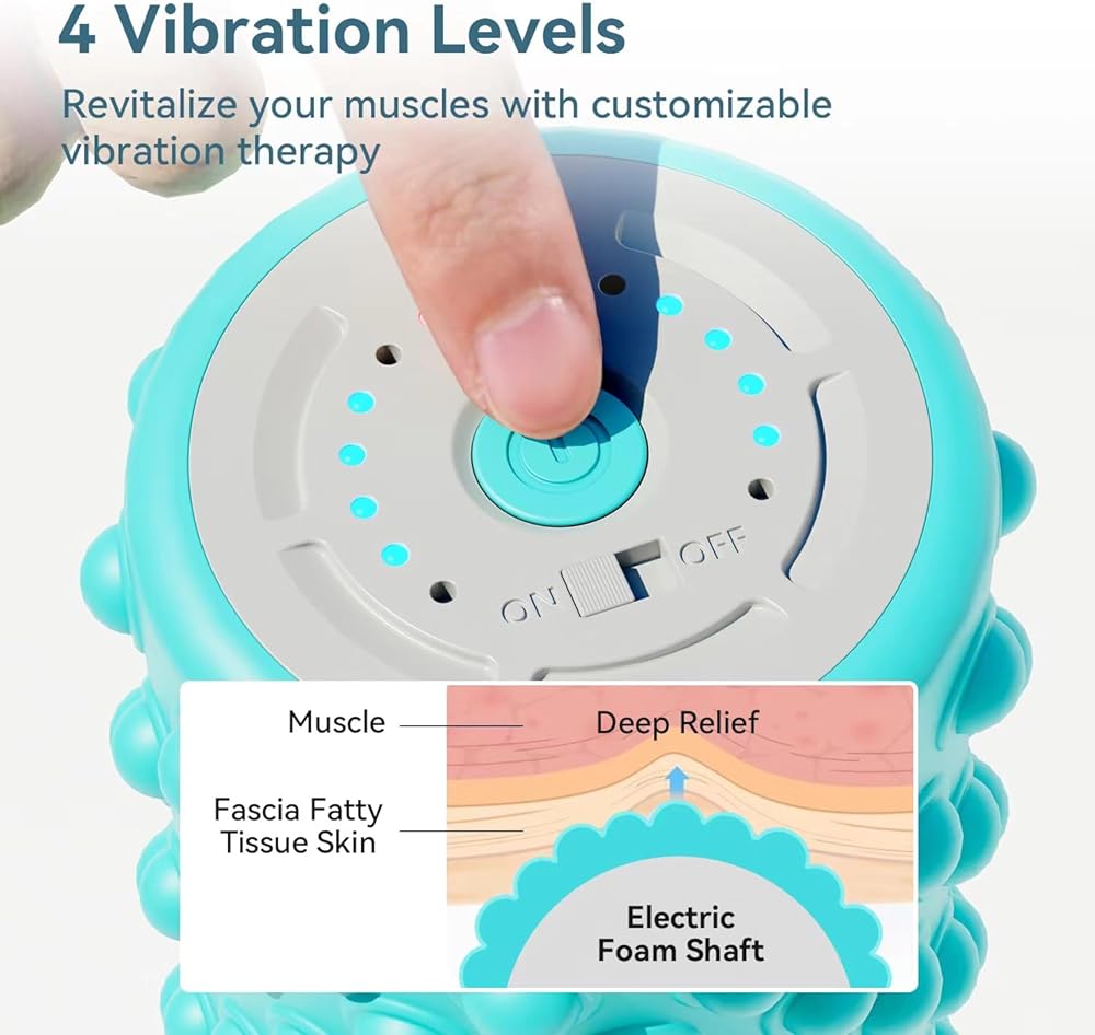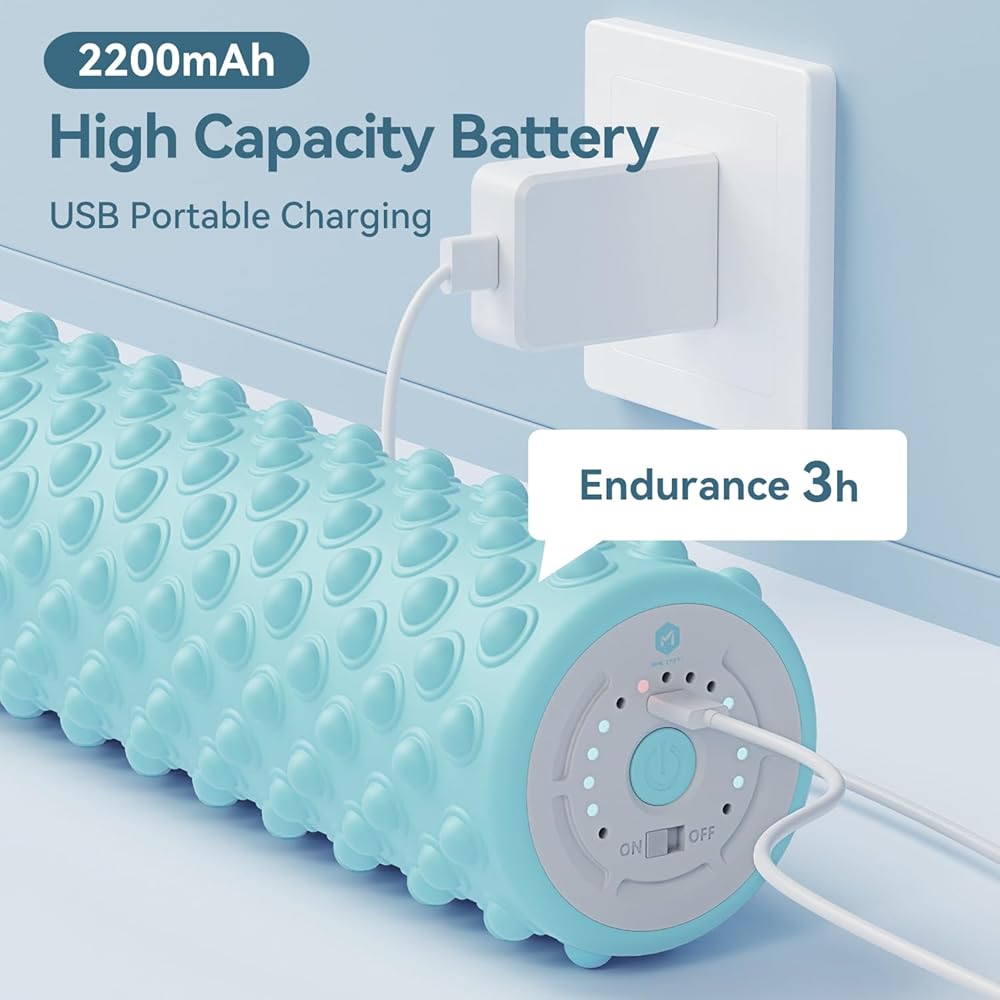【4 Vibration levels conversion】 - This electric foam roller has 4 levels of powerful setting . High penetration muscle deep stimulation can be provided by combining . The vibration level from 1600RPM to 3000RPM.