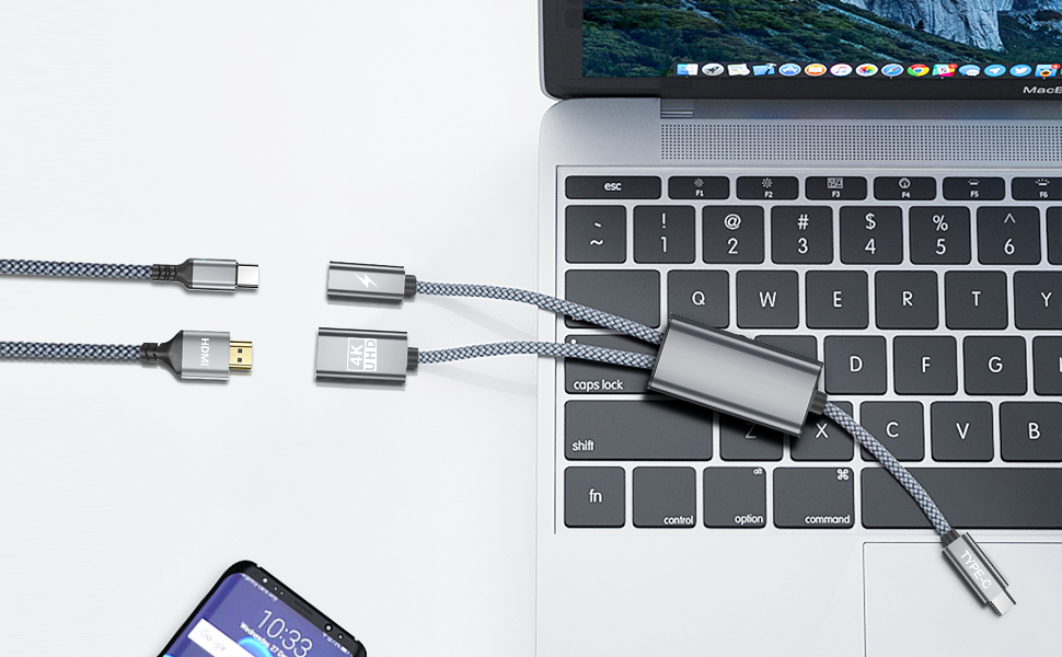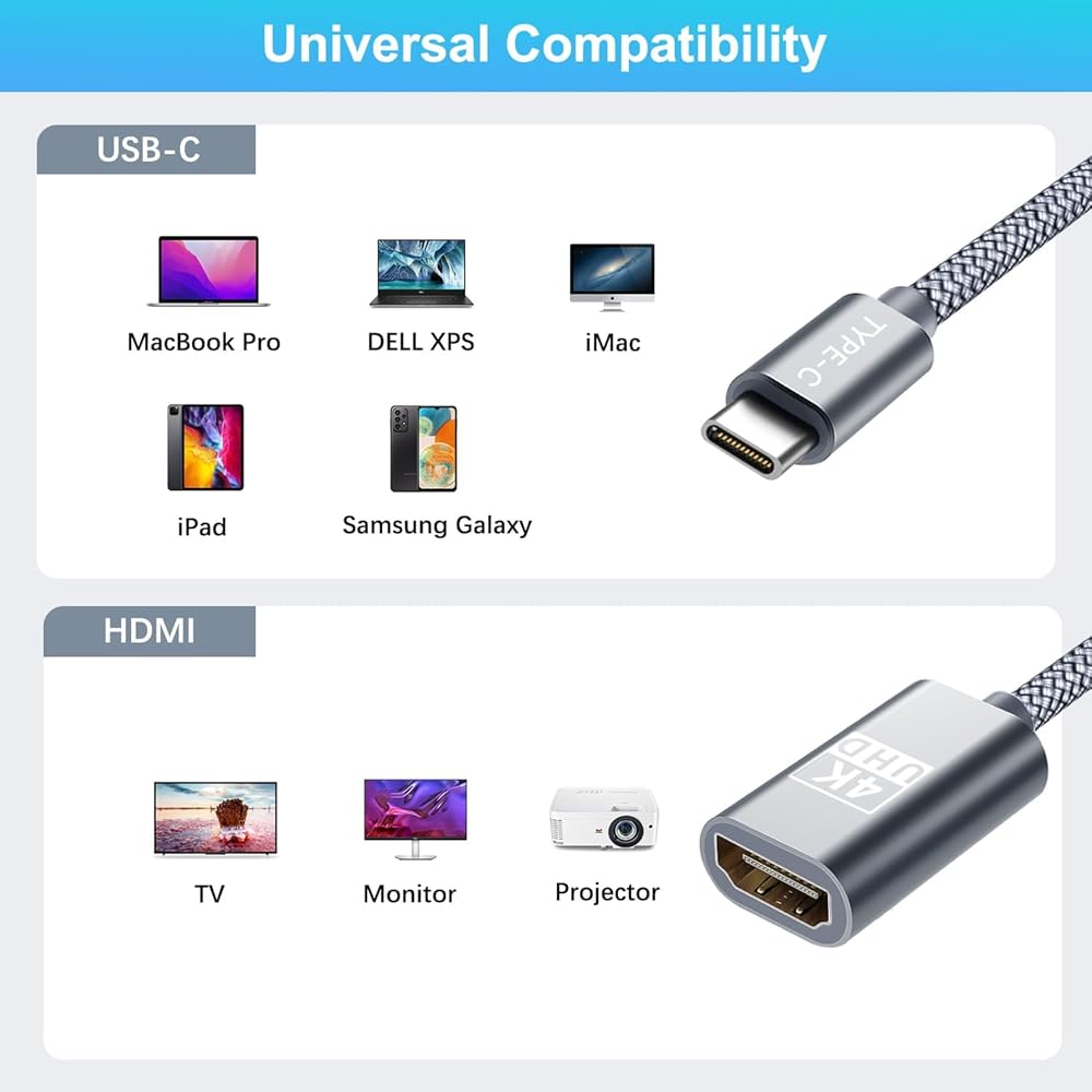 يدعم إخراج الفيديو بدقة 4K: استمتع بمرئيات مذهلة بدقة 4K وصوت غامر من خلال توصيل جهاز USB-C الخاص بك بشاشة HDMI أو جهاز عرض دون عناء. استمتع بأفضل وسائل الترفيه عالية الوضوح بسهولة.