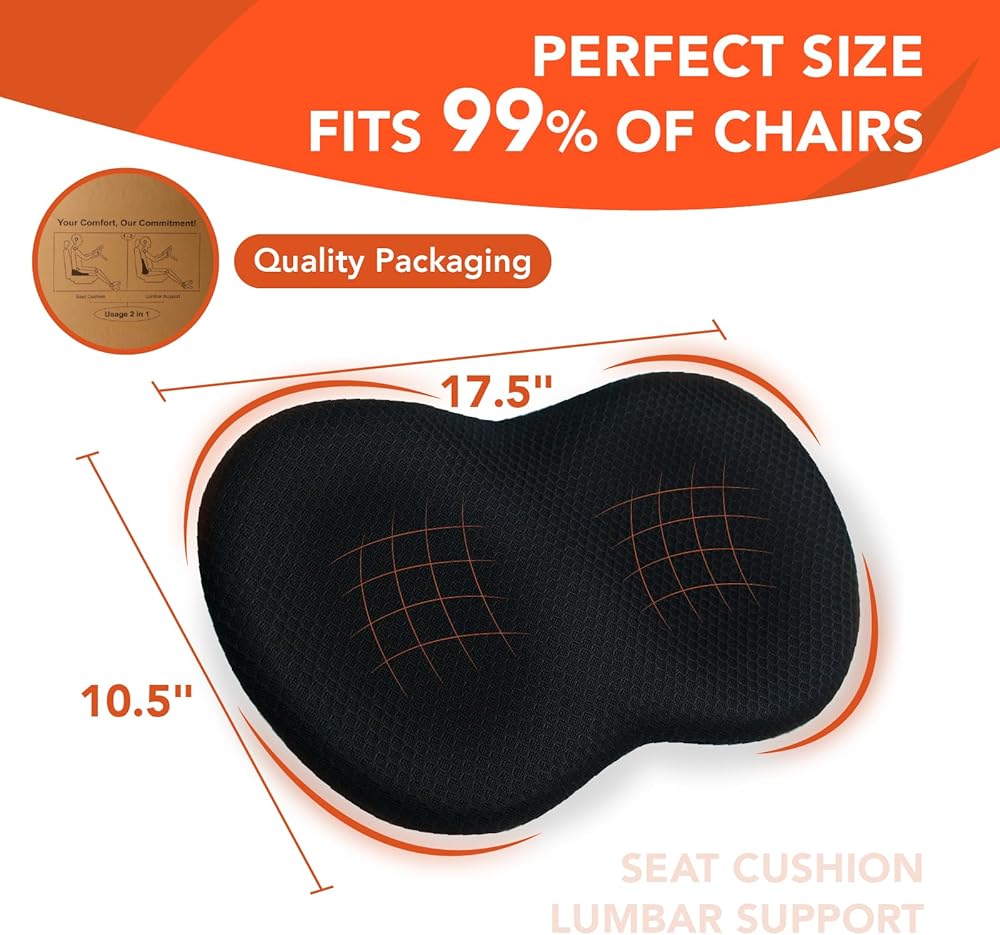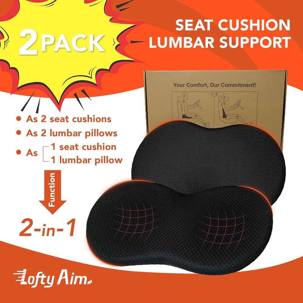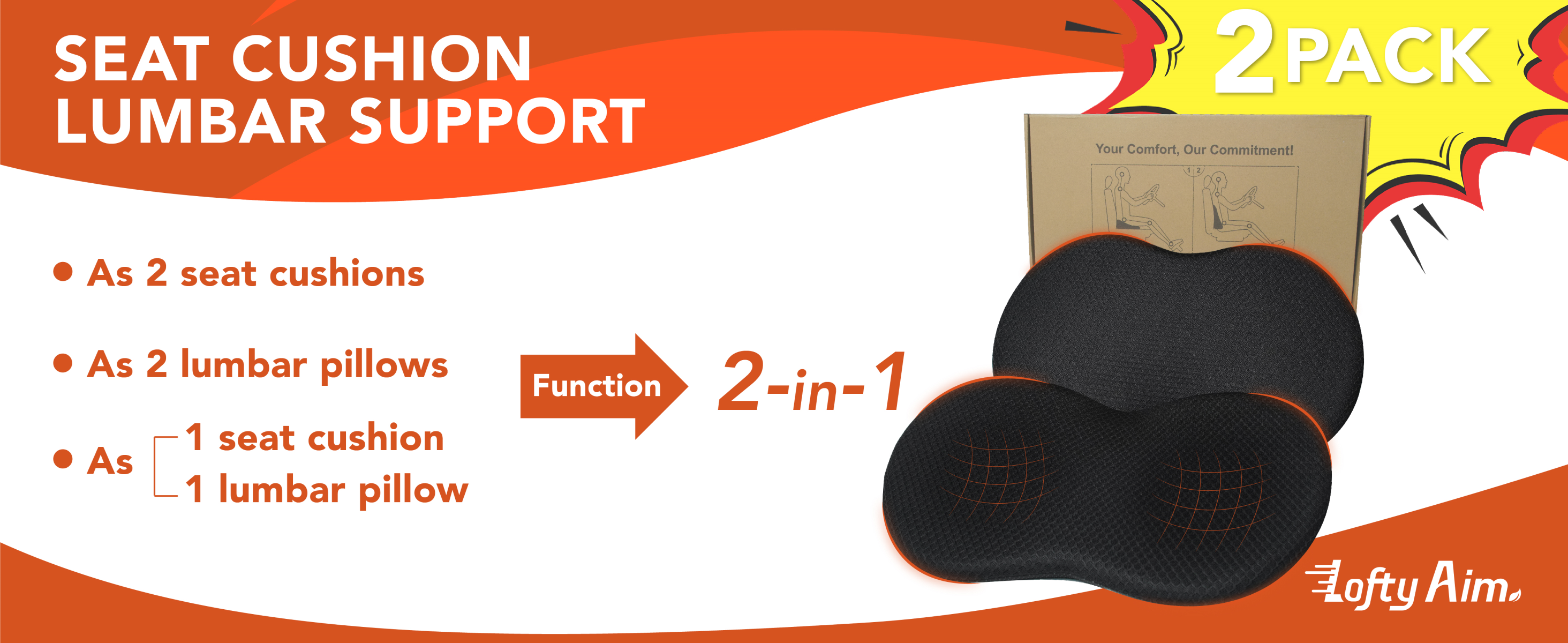 • وسائد السيارة 2 في 1 ودعم أسفل الظهر: توفر وظائف متعددة وخيارات دعم في الوسادة. كوسادة مقعد تلقائية، فهي توفر الراحة لمؤخرة السائقين؛ كوسادة أسفل الظهر للسيارة، فهي توفر دعمًا جيدًا للجسم أثناء القيادة أو الجلوس