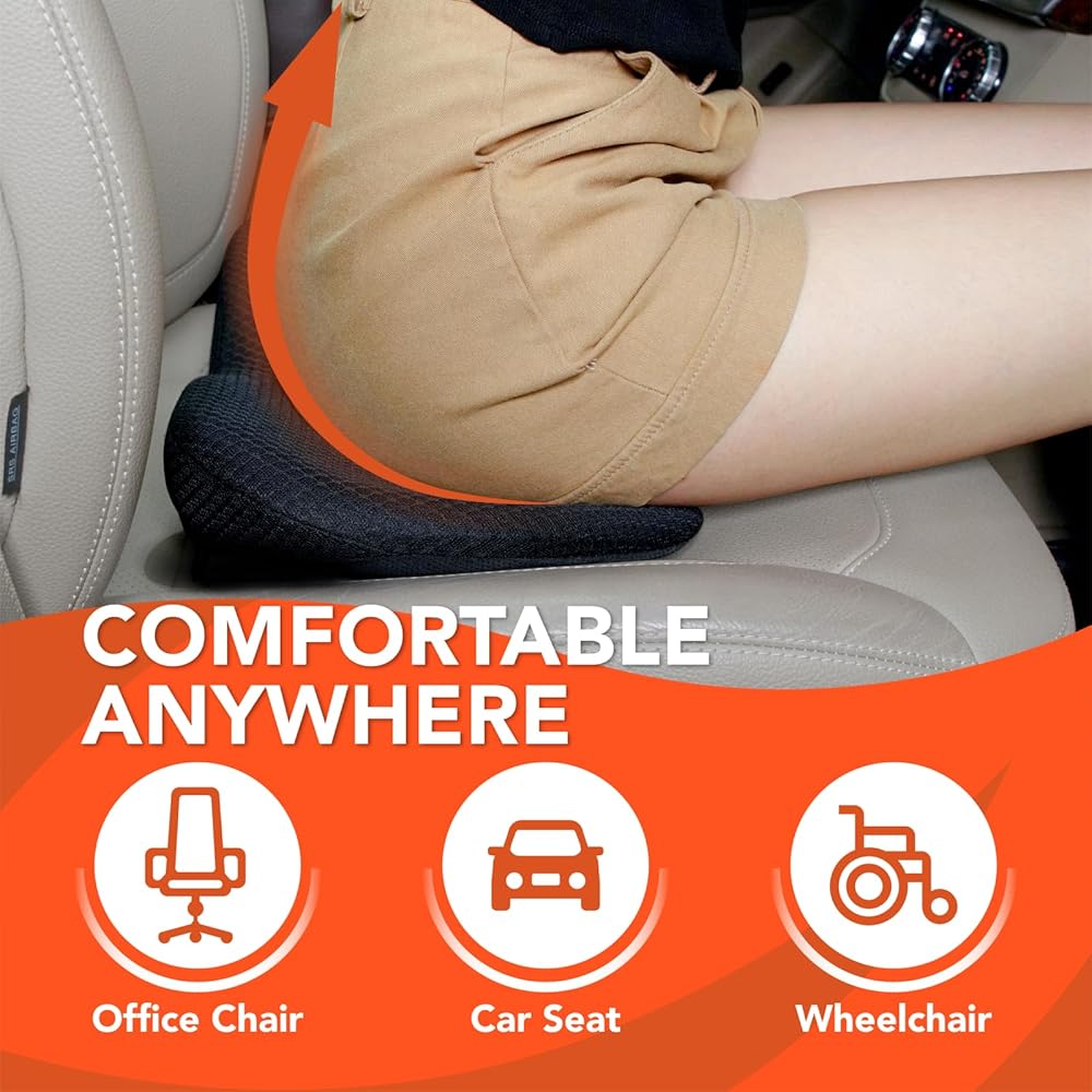 وسادة مقعد السيارة: وسائد مقعد السائق مكونة من قطعتين - وسائد سيارة من الإسفنج الذكي لتخفيف آلام المؤخرة/عرق النسا - وسائد قيادة للسيارة والشاحنات والمكتب - أسود