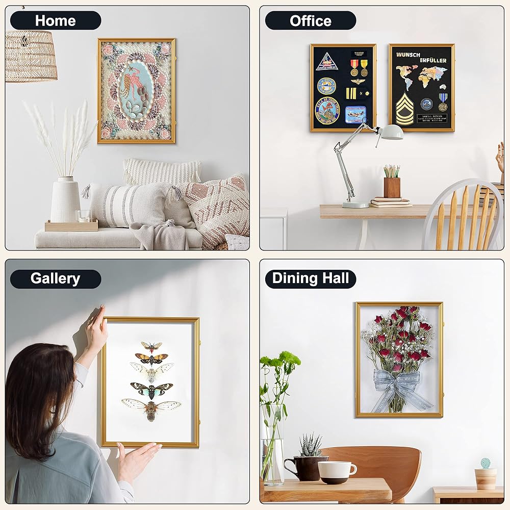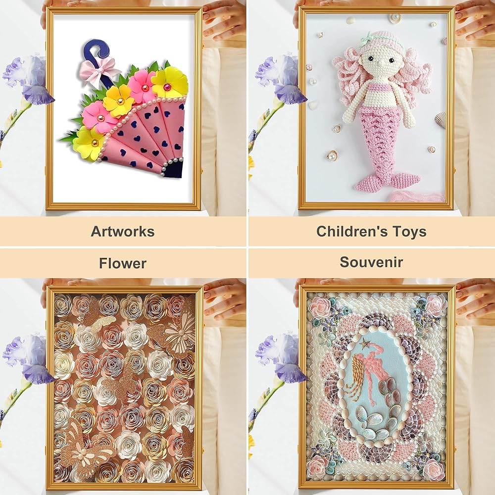 【سهلة التركيب】يمكنك استخدام الدبابيس والملصقات للصق الهدايا التذكارية داخل صندوق الظل. لدينا خطافات وإكسسوارات براغي في الخلف، حتى تتمكن من تعليق صندوق الذاكرة على الحائط بسهولة.