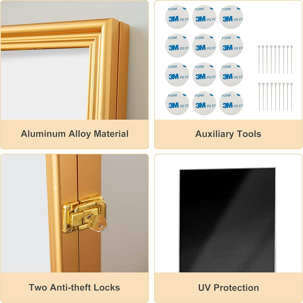 【خامة عالية الجودة】حافظة عرض صندوق الظل مصنوعة من إطار من سبائك الألومنيوم وهو خفيف الوزن ولن يتبلل، مما يسمح لمجموعتك بالبقاء جافة لفترة طويلة. يمكن أن توفر الألواح البلاستيكية شفافية بنسبة 100%، مما يسمح لك بالاستمتاع بمجموعتك بشكل أفضل. قفلان مضادان للسرقة يأتيان مع مفاتيح، مما يجعل مجموعاتك حصرية!