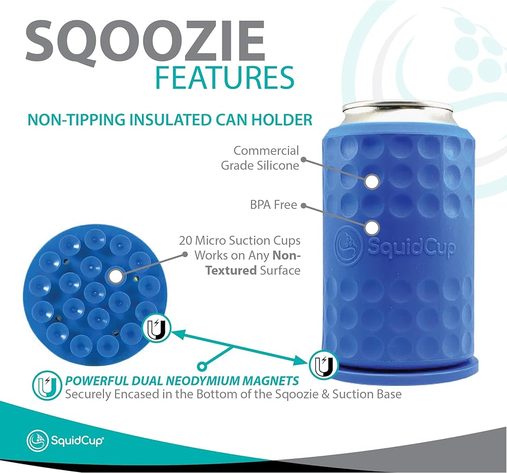 العزل: دعونا نكون صادقين. يحتوي منتج Sqoozi الخاص بنا على مطاط سيليكون من الدرجة التجارية الذي يوفر عزلاً فائقًا للنيوبرين والإسفنج التقليدي، ولكنه لن يعزل طالما أن الجدار المزدوج باهظ الثمن، حامل العلب المعدنية. وإذا كنت صادقًا، فهل تحتاج حقًا إلى حامل علب لعزل مشروبك لمدة تزيد عن 12 ساعة؟ لم نعتقد ذلك! يناسب معظم المقاسات القياسية بوزن 12 أونصة. علب