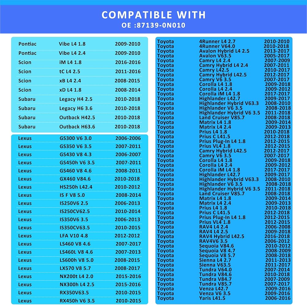 87139-0N010 استبدال فلتر هواء المقصورة HEPA متوافق مع GS300/350/430/450h، Pontiac Vibe، Scion iM/tC/xB/xD، Legacy Outback، 4Runner Avalon Camry Corolla Prius Corolla RAV4