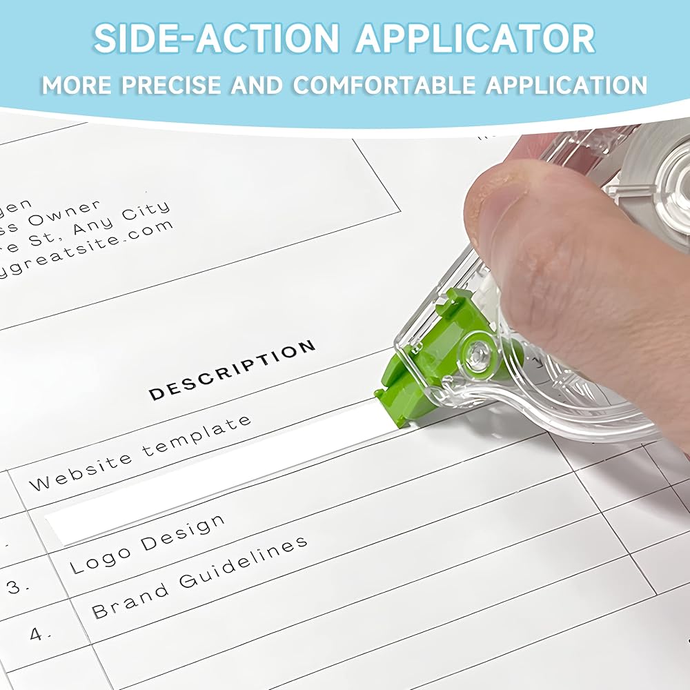 تصحيحات دقيقة في كل مرة - كل ما عليك فعله هو تشغيل شريط التصحيح بلطف على الورقة من أجل التصحيح الفوري! يتم تطبيق هذا الشريط الأبيض بسلاسة وسهولة على معظم الأسطح بما في ذلك المقالات الصحفية والصور والمزيد!