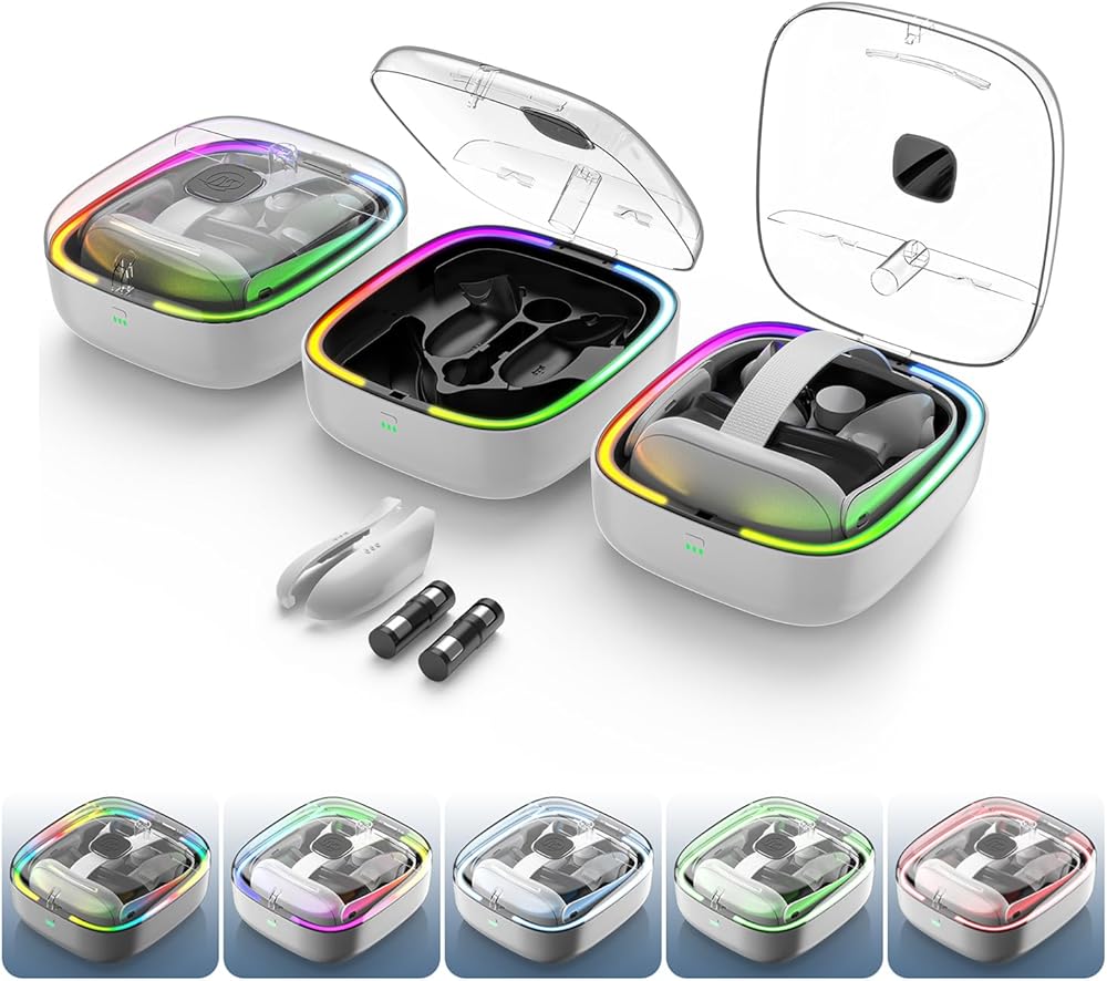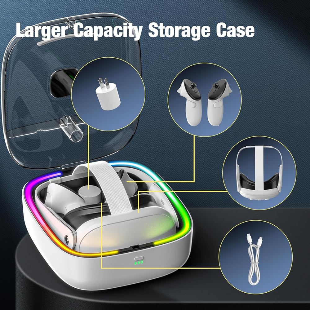 ★【 حقيبة تخزين أنيقة 】: مدمجة بإضاءة RGB ومؤشرات LED، إنها ليست فقط قاعدة شحن سريعة، ولكنها أيضًا حقيبة تخزين أنيقة لعرض مهمتك 3 منظمة. وحقيبة الشحن المزودة بحزام للرأس مناسبة للحمل والسفر.