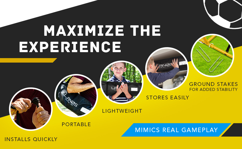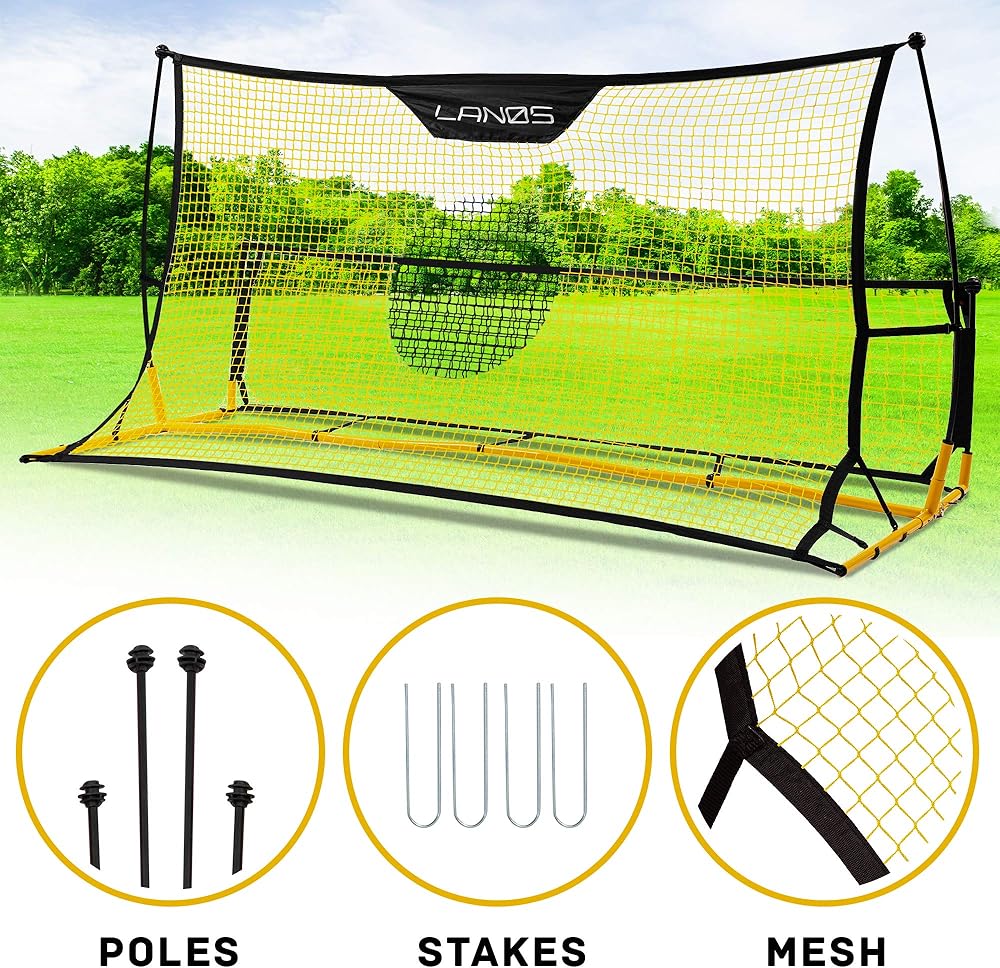 استعد للعب: قم بتطوير مهاراتك في تمرير كرة القدم في أي مكان مع جهاز كرة القدم المحمول هذا للساحات الخلفية من العلامات التجارية Lanos! تعتبر شبكة أهداف تدريب كرة القدم الحصرية هذه مثالية للتدريب الفردي والضربات الرأسية الهجومية والدفاعية، وستسمح لك بالعمل على الكرات الهوائية ونصف الكرات الهوائية - لذلك تكون دائمًا على استعداد لتسجيل هذا الهدف الفائز باللعبة.