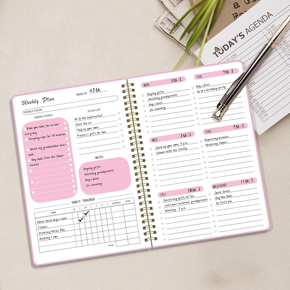 حقق أهدافك إذا كنت تبحث عن المخطط المثالي الذي سيحدث فرقًا، فجرّب هذا المخطط الأسبوعي. لقد صممنا هذا المخطط الأسبوعي والمخطط الشهري من أجل التطبيق العملي، وأردنا أن يكون مخططنا هو الذي يجعلك تشعر بشيء إضافي عندما تستخدمه كل يوم. توقف عن المماطلة وابدأ في تحويل أحلامك الكبيرة إلى حقيقة!