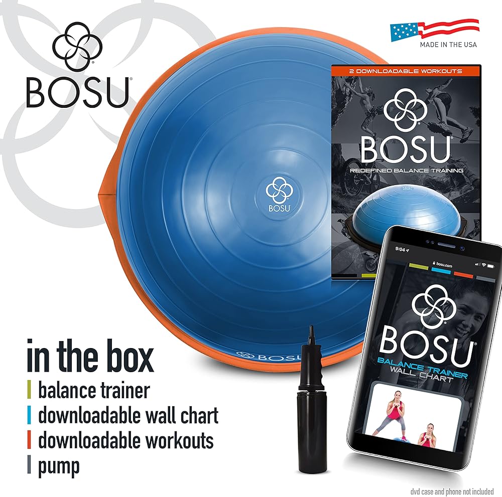 The BOSU Balance Trainer gives you a fast, fun workout that fits into the busiest lifestyle. It's designed to provide cardio, muscular strength, flexibility and endurance training with just one device. And while the BOSU is an easy-to-use piece of exercise equipment, it's impossible to master and continues to challenge as strength and endurance improves. BOSU is the original balance trainer introduced 20 years ago and is made in the US. Since it's introduction in 1999, BOSU is still the balance trainer of choice by fitness trainers, physical therapists, fitness clubs and professional sports teams. They trust the BOSU brand and know that it's made with quality materials and superior workmanship. The BOSU Balance Trainer is tested to last 10 times longer than the leading generic balance trainer. And, if there is problem with the BOSU, our US-based customer support team is happy to help resolve issues. To ensure you get the original BOSU, look for the BOSU logo on every BOSU Balance Trainer.