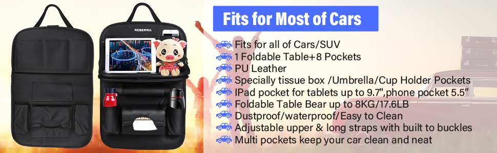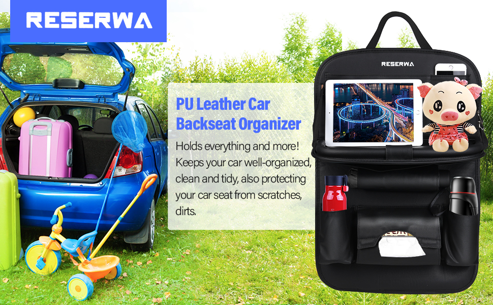【مقاوم للماء وسهل التنظيف】 منظم مقعد السيارة مصنوع من جلد البولي يوريثان عالي الجودة مع خاصية مقاومة للماء ومتانة جيدة. جعل سيارتك تبدو فاخرة جدا! بالإضافة إلى ذلك، فهو يحمي الجزء الخلفي من مقعد سيارتك من الغبار والتآكل والأوساخ. حافظ على نظافة مقعدك وسيحمي مقعدك من الخدش ويمكنه حماية تنجيد مقعد السيارة من انسكابات السوائل والبقع والطين.
