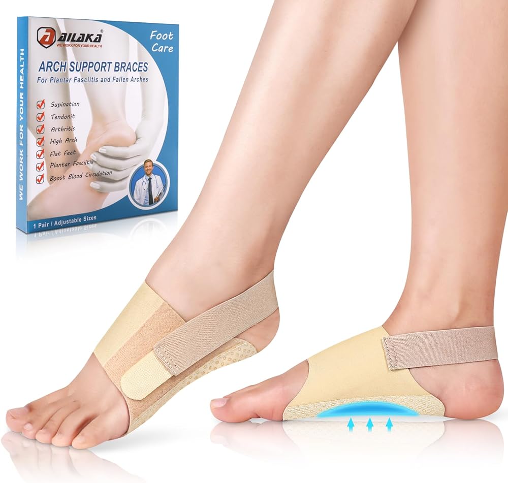 🦶تخفيف آلام التقوس: تم تصميم أكمام دعم قوس القدم من Ailaka خصيصًا للمرضى الذين يعانون من التهاب اللفافة الأخمصية، والإفراط في الكب، والتقوسات العالية، والتقوسات الساقطة، والقدم المسطحة، وزيادة الوزن. تتوافق وسادات الجل المصممة بشكل فريد مع زاوية القوس وتوفر أقصى قدر من الدعم، مما يقلل الألم ويقلل من تعب القدم.