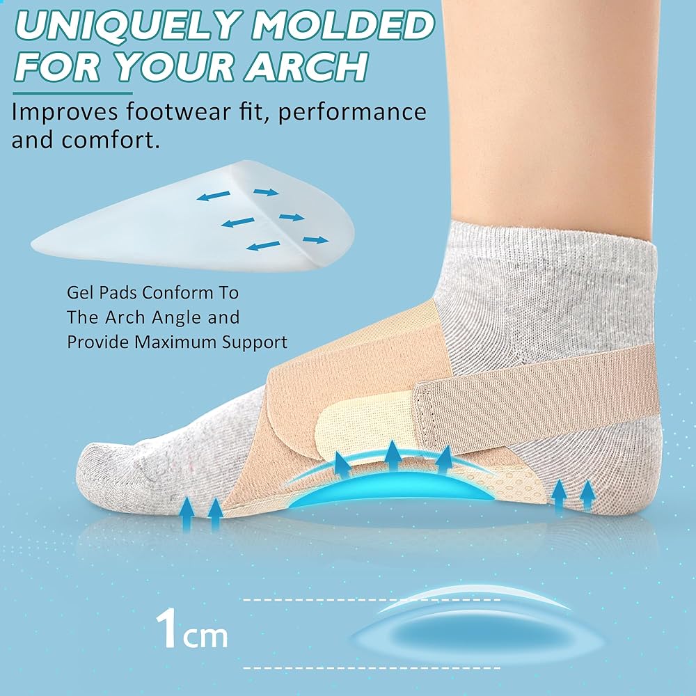 🦶أحزمة قوس قابلة للتعديل: أغطية دعم قوس القدم لدينا قابلة للتعديل لتناسب أشكال وأحجام القدم المختلفة. سواء كانت قدميك كبيرة أو صغيرة، يمكنك الاستمتاع بالدعم القوي والراحة التي توفرها دعامات قوس القدم لدينا. دعامة القدم خفيفة الوزن لا تثقل كاهل قدميك، مما يسمح لك بارتدائها حافي القدمين أو مع معظم الأحذية: الصنادل، أحذية الرقص، أحذية اليوجا، أحذية الفساتين، أحذية الجري، أحذية العمل، الأحذية الرياضية، الأحذية العالية، أو أحذية التنس.