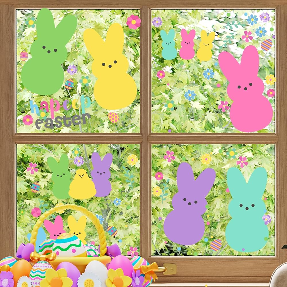 ملصقات نافذة عيد الفصح لتزيين أرنب عيد الفصح، ما الأمر؟ ملصقات نافذة على شكل زهرة الربيع لعطلة عيد الفصح، ملصقات أرنب ملونة لحفلات أرنب الربيع، مستلزمات تزيين حفلات عيد الفصح