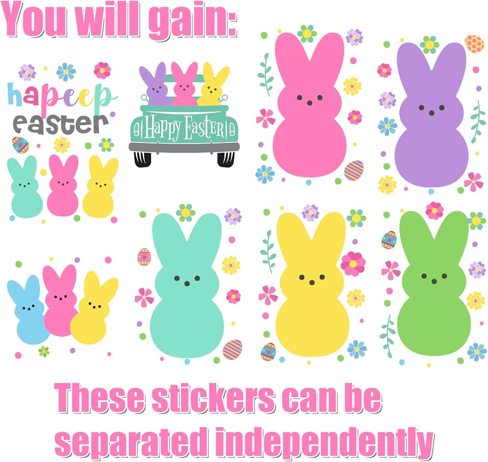 【فكرة هدية】ملصقات عيد الفصح السعيدة رائعة أيضًا كهدايا لحفلات عيد الفصح، وهي هدية مثالية يمكن وضعها في سلة عيد الفصح. استخدم ملصق النافذة على شكل أرنب الترحيب لتزيين منزلك والترحيب بوصول عيد الفصح.