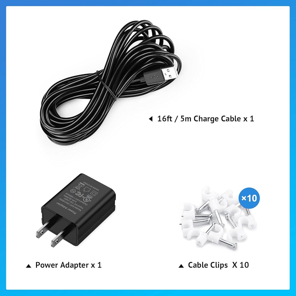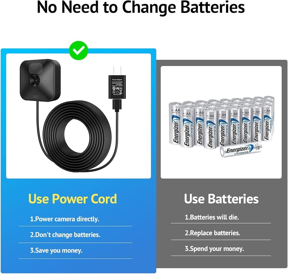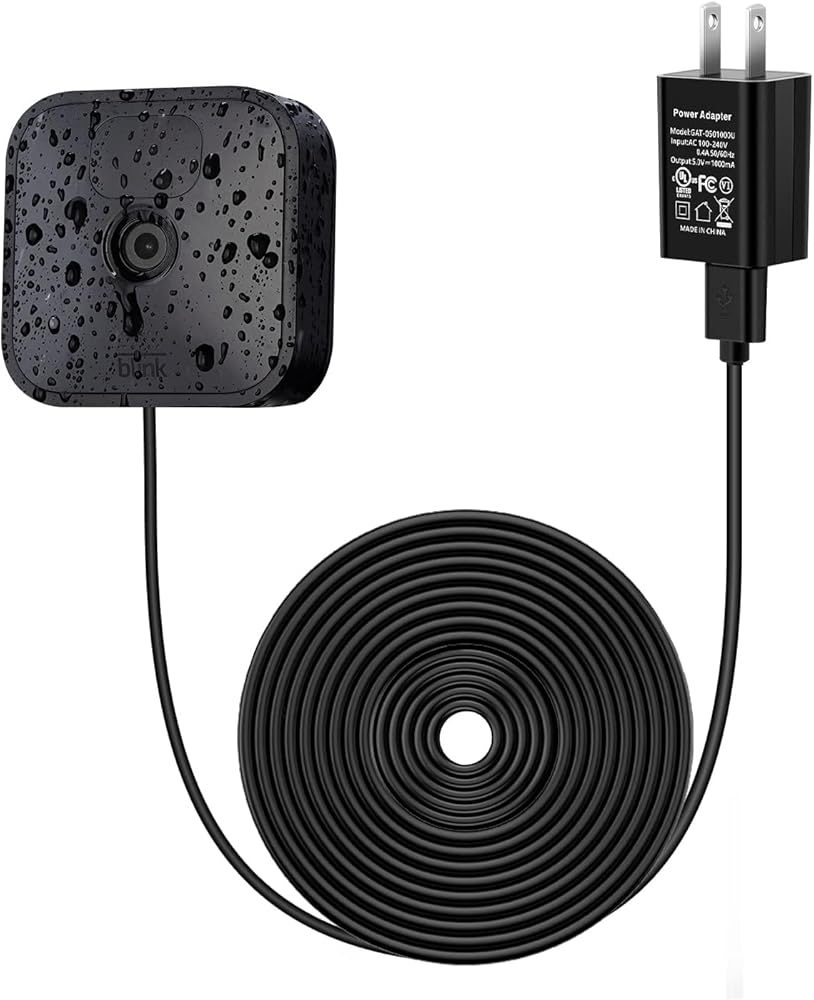 كابل طاقة Ayotu بطول 16 قدم/5 متر للبلينك الخارجي (الجيل الثالث) - كاميرا لاسلكية ووميضة XT2/XT، محول طاقة مقاوم للماء مع سلك شحن، لا حاجة لتغيير البطارية (بدون كاميرا)، أسود