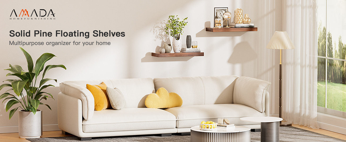 متانة متينة: أرفف AMADA العائمة مصنوعة من خشب الصنوبر الصلب بنسبة 100% للحصول على جودة دائمة ونمط طبيعي. تُعد أرفف الحائط الخشبية بمثابة تحسين جذاب للمساحة يمكنك الاعتماد عليه، حيث تتحمل بشكل مريح ما يصل إلى 22 رطلاً لكل منها.
