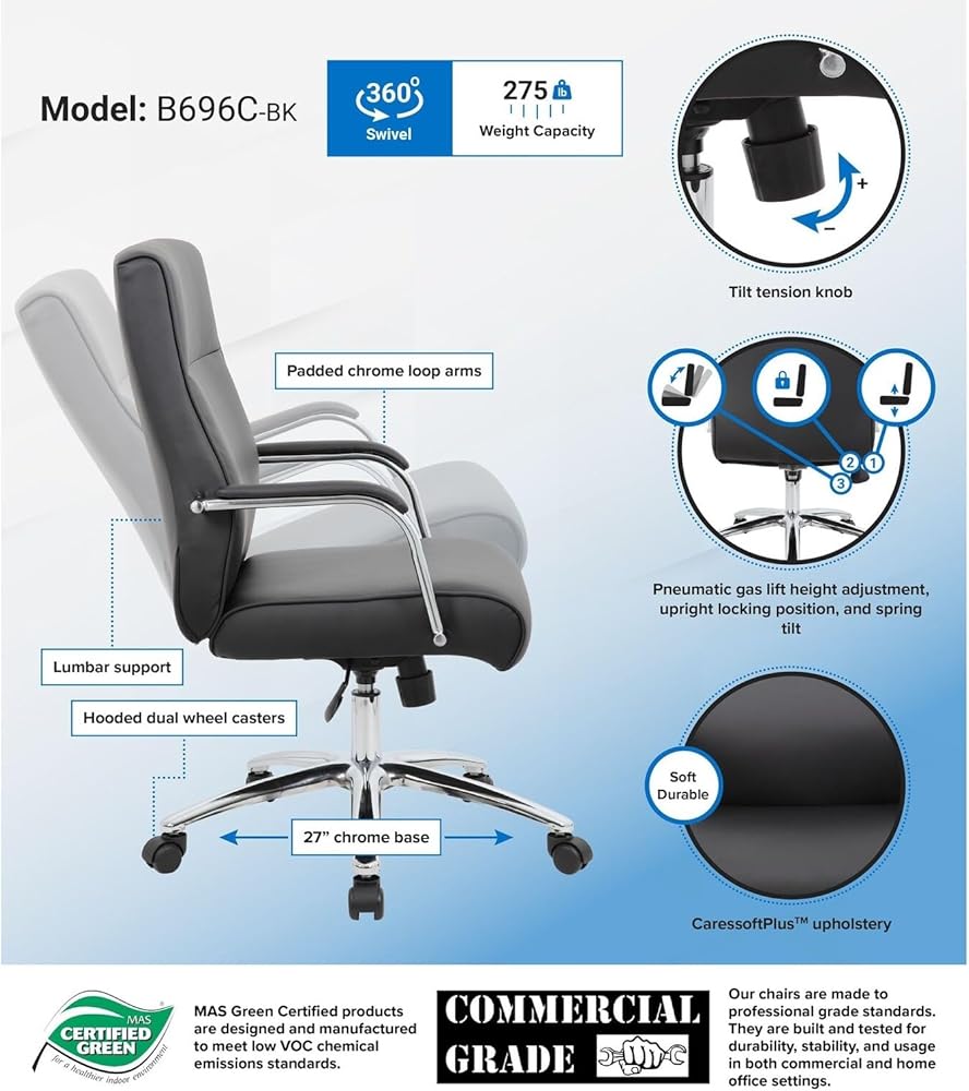 - Boss Modern Executive Conference Chair - Black (B696C-BK). Seat Height: 19″-22″H