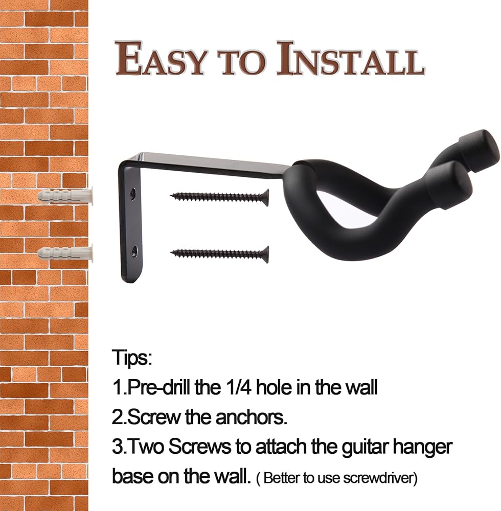 سهلة التركيب، قطعتان من شماعات الجيتار تأتي مع ملصقات اختيارية لتناسب أي نوع من الجدران. وشملت مسامير والمراسي. ستضمن لك WINGO أيضًا ضمانًا مدى الحياة.