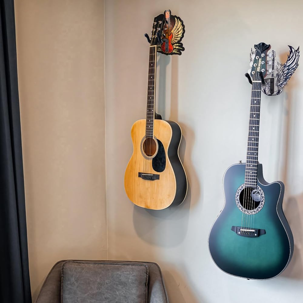 شماعات الجيتار WINGO Cool DIY، يمكنك إضفاء الطابع الشخصي على جدار الجيتار الخاص بك في استوديو الموسيقى، أو غرفة النوم، أو غرفة المعيشة، أو غرفة الأطفال، أو المكتب، أو مساحة التدريب. ملصقات اختيارية رائعة مرفقة، هدية إضافية، يمكنك استخدام ملصق DIY آخر بدلاً من ذلك. جيتارك فريد مثلك.